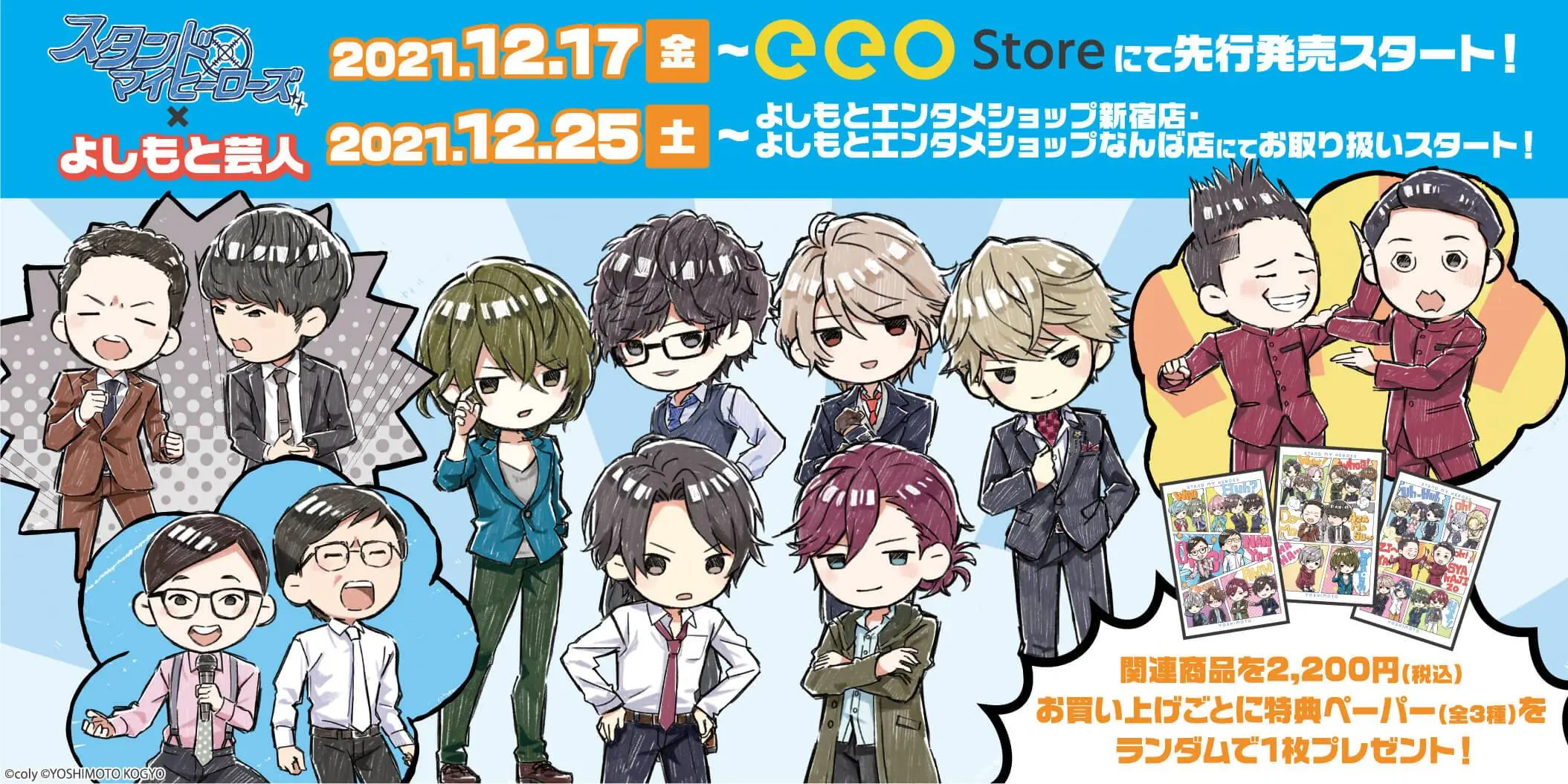 「スタンドマイヒーローズ ×よしもと芸人」新商品を2,200円(税込)お買い上げごとに、特典ペーパーをランダム(全3種)で1枚プレゼントいたします! 数量限定ですので、お早めにチェックしてみてくださいね。通販でも特典がつきますので、ぜひご利用ください!