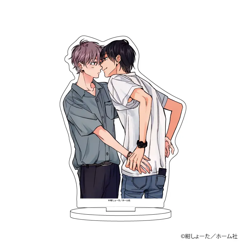 紺しょーた先生の大人気BL漫画『日々も積もれば恋となる』の央人(おと)×天(そら)、『恋を描けば色が咲く』の龍二(りゅうじ)×獅(れお)、この2組のカップルがグッズ化されました。