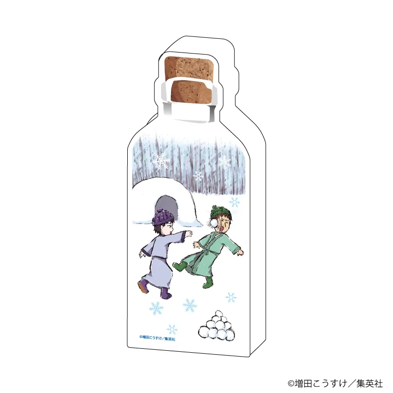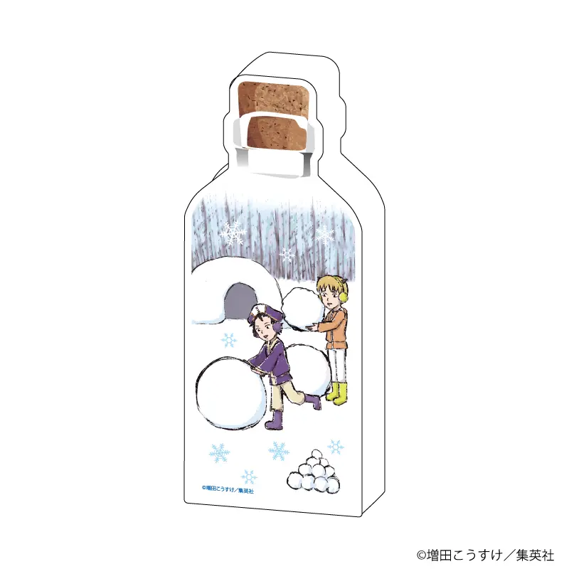 缶バッジでは、荒ぶりながら逃げる太子や顔面に雪玉が命中している芭蕉のヘタレっぷりが目を引きます。またコレクションボトルでは、閻魔大王&鬼男が巨大な雪玉を手作り中……!? このほか、無邪気さと腹黒さが融合した新作グッズが目白押しです。