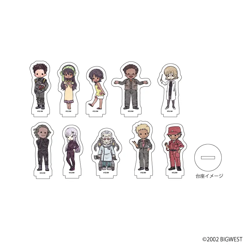 大きさおよそ65mmのアクリルキーホルダーも発売されます。キャラクターによっては搭乗機とともに描かれており、『マクロスゼロ』の世界観を感じることも。