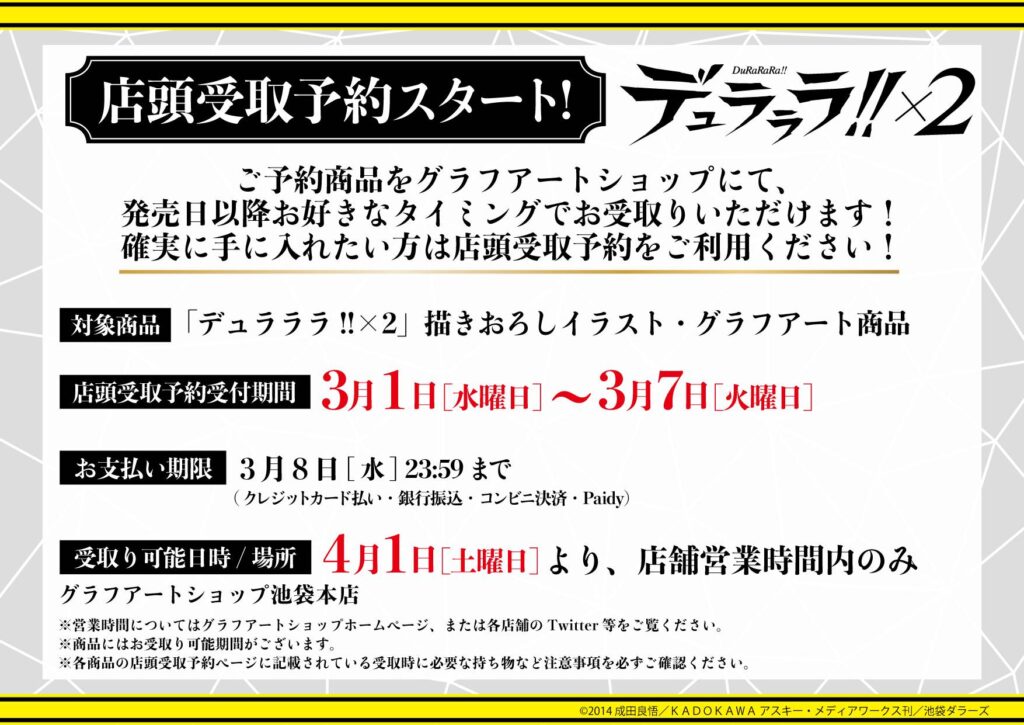 『デュラララ!!×2』新商品を含めて関連商品を2,200円(税込)お買い上げごとに、数量限定ポストカードを1枚プレゼント。
