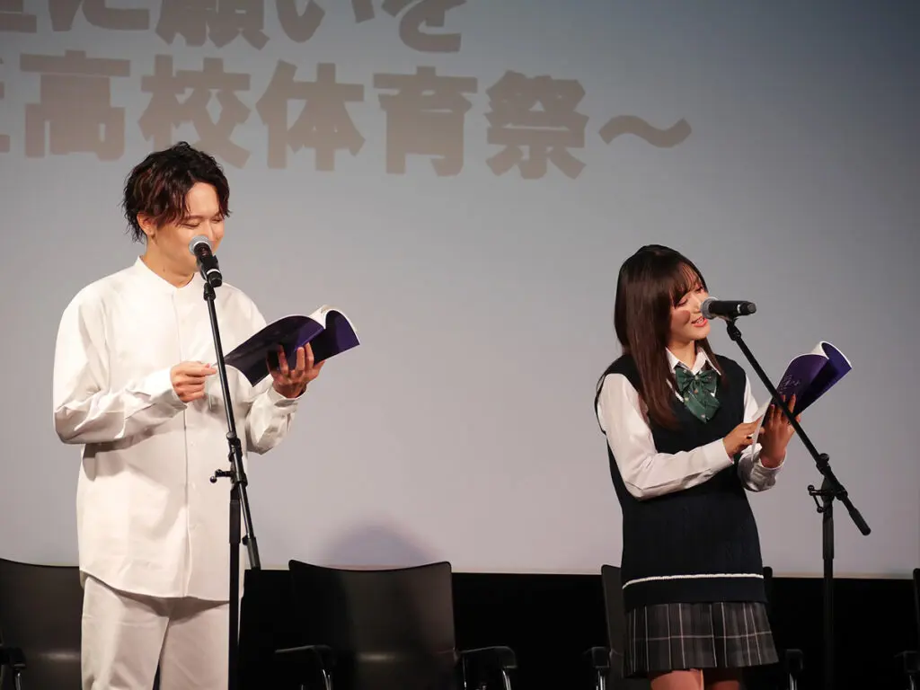 と、ここで田邊さんが「汐谷さんがまだ朗読してないんだよね~」とぽつり。まだ時間があるということで、汐谷さんは自身が演じた裕介役のまま、他のキャストは役を入れ替えて朗読をすることに。朗読劇に参加しない出演者陣はモーションアクターとして後ろでお芝居をする、という流れになり、吉岡さんが星羅役、南さんが莉緒役、今井さんが健吾役、笹さんが放送の声役としてマイク前に立ち、朗読劇特別編がスタート。