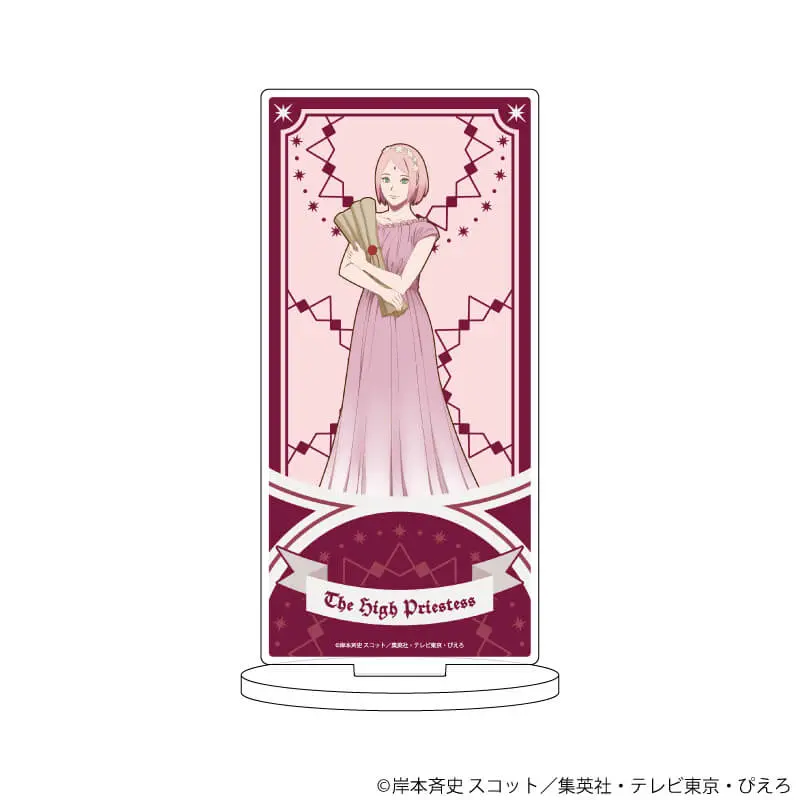 キャラアクリルフィギュアは、本物のタロットカードのようなデザインのアクリル製スタンド。“The High Priestess(女教皇)”や“The Empress(女帝)”、希望や将来の可能性を意味する“The Star(星)”などタロットカードには欠かせないカード名の“アルカナ”も描きました。