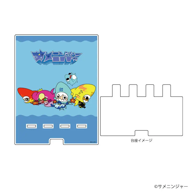 デカスマキャラスタンドは、およそ18cm×14cm×0.3cmのアクリル製スマホスタンド。デカスマキャラスタンドにスマホを置いて、『サメニンジャー』の動画を観てみませんか?