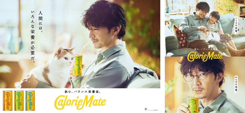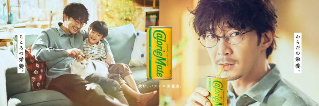 育児と仕事の両立のためのワークスタイルを選択する方も増えてきた中、CMの主人公は育児にも仕事にも、一生懸命な父親です。「吾輩は栄養である・怪獣との毎日」篇では、充実しつつも慌ただしく過ぎていってしまう日常で「カロリーメイト リキッド」を飲んだり、飼い猫とたわむれることで、自身の“栄養”を補給していく様子が描かれています。