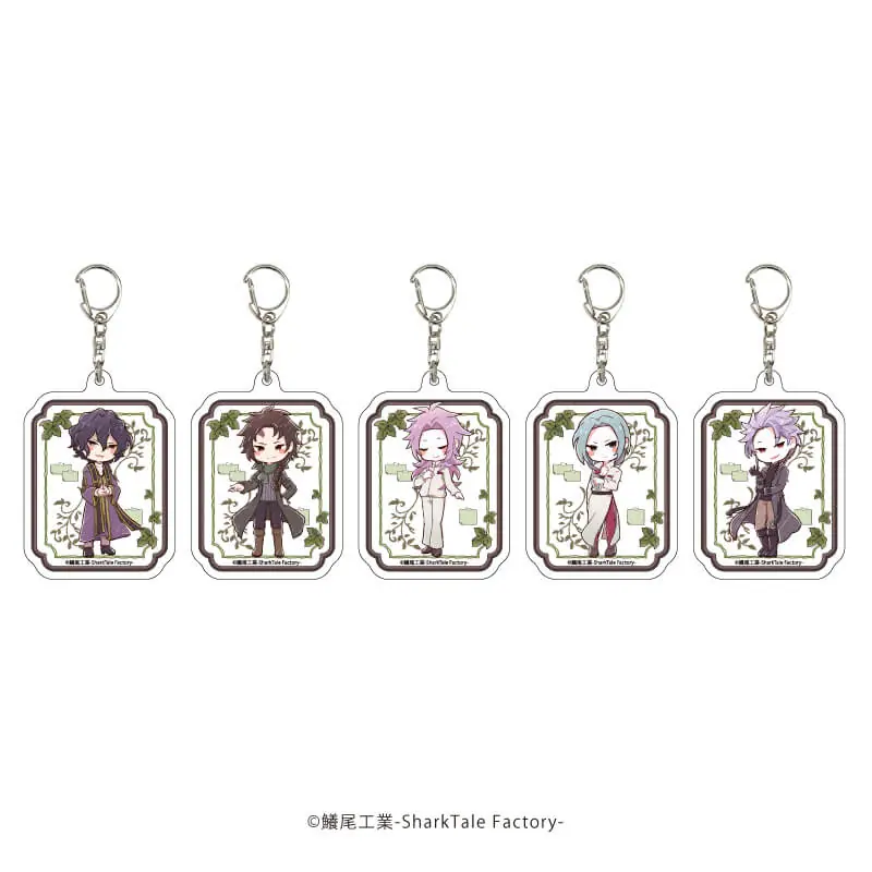 アクリルキーホルダーは、大きさおよそ6.5cm×6.5cm。クラシカルなフレームの中にキャストを描いた、まるで絵画を彷彿とさせるオシャレなデザインになっています。
