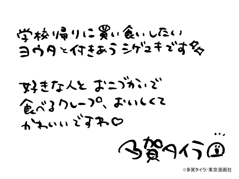 また本記事では、BLフェア開催にあたって多賀タイラ先生の直筆コメントもご紹介!