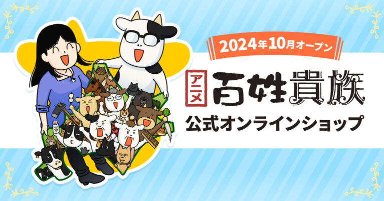 2024年10月からTVアニメ第2期が好評放送中のアニメ『百姓貴族』。本作のキャラクターグッズや日用品など、幅広い商品を取り扱う公式オンラインショップが2024年10月16日(水)にオープンしました! アニメ『百姓貴族』 … 続きを読む アニメ『百姓貴族』公式オンラインショップが10月16日にオープン! 耳タグ風アクキーやグラスなど新商品の販売も開始!!
