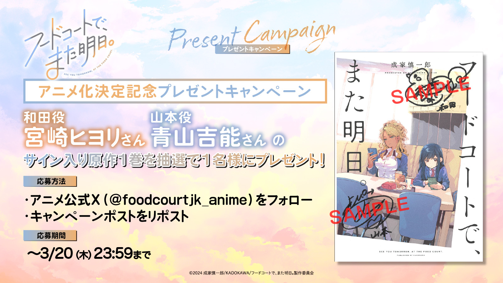 2024年12⽉にTVアニメ化が発表された『フードコートで、また明⽇。』。そのTVアニメのティザーPVが公開されました。