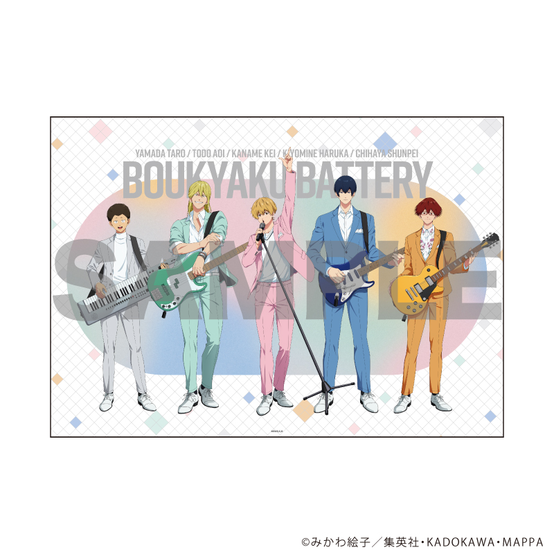 普段は見ることのできないカラースーツ姿、そして五線譜と音符が描かれた台座など、“バンド”テーマならでは描き下ろしイラストをじっくり楽しんでみてください!