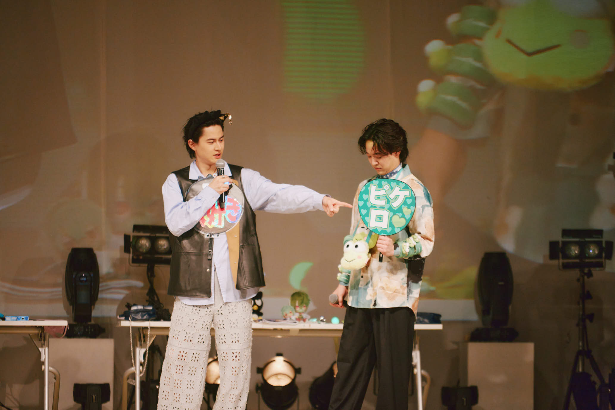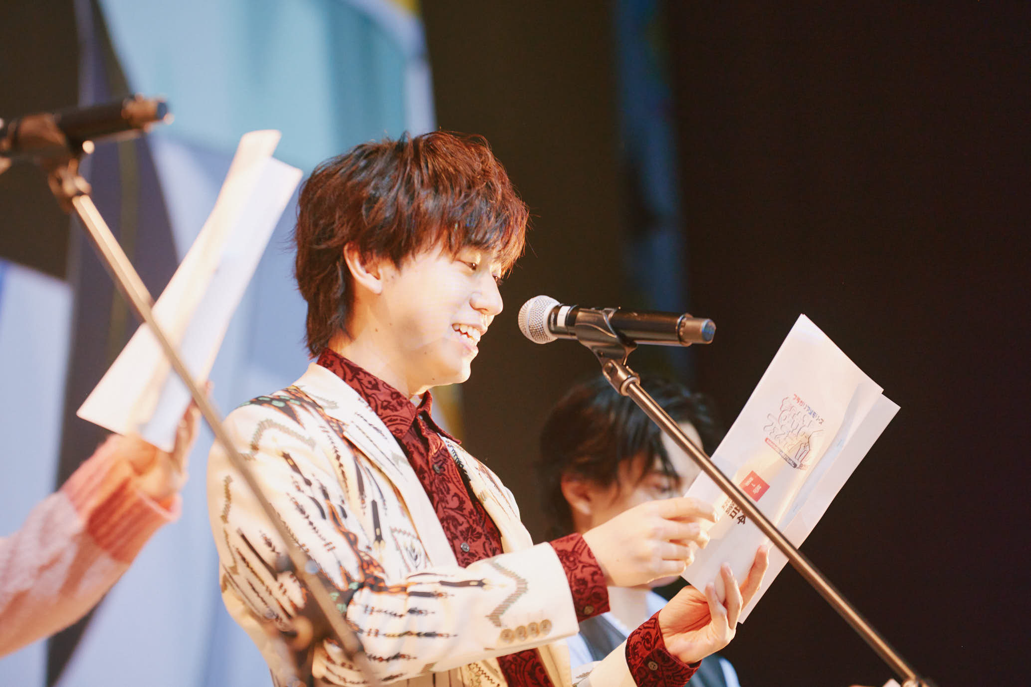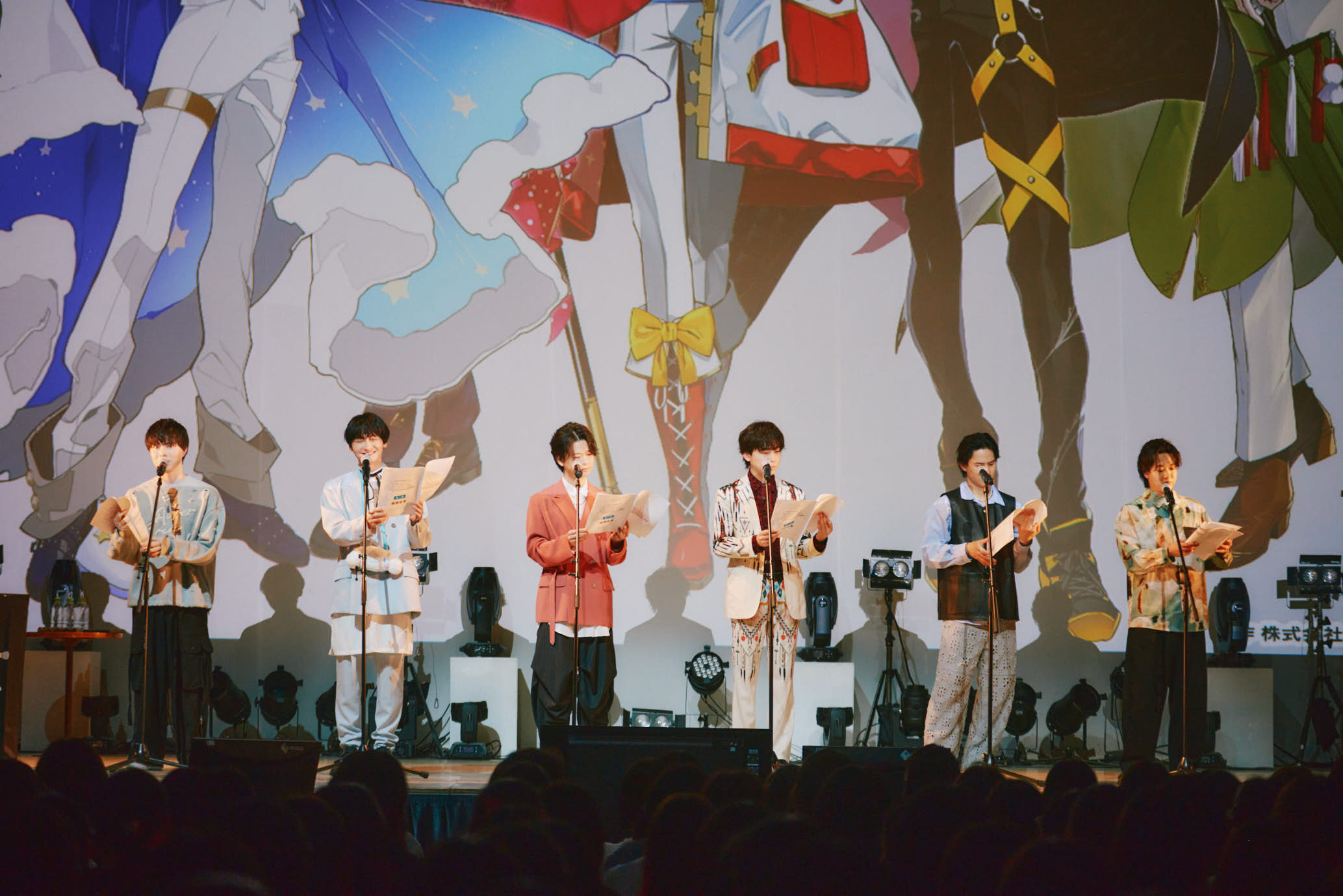 推し活ピューロランドフェスにちなんで書き下ろされた、スペシャルストーリーを声優キャストたちが生朗読しました。「遊園地を訪れたフラがリアたち」をテーマにしたストーリーで、生朗読披露後、畠中祐さんは「まだ(ボイスドラマで)掛け合ったことのない人たちと掛け合えて楽しかった」、島﨑信長さんは「(スペシャルストーリーの中では)ハルリットの天然感が増していたね」とコメントし、イベントならではの特別なストーリーをお客様と一緒に楽しんでいた様子でした。
