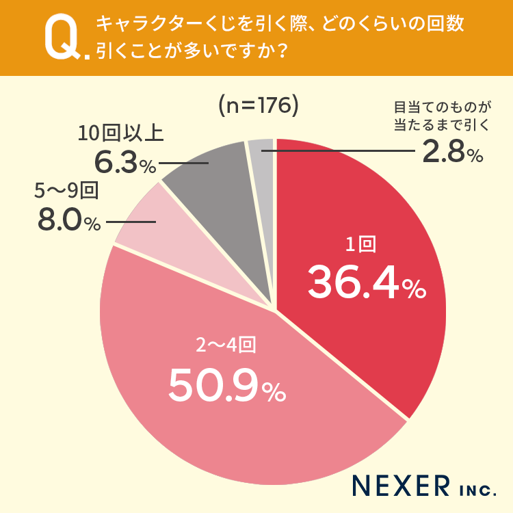さらにキャラクターくじを引く際、どのくらいの回数引くことが多いかも聞いてみました。