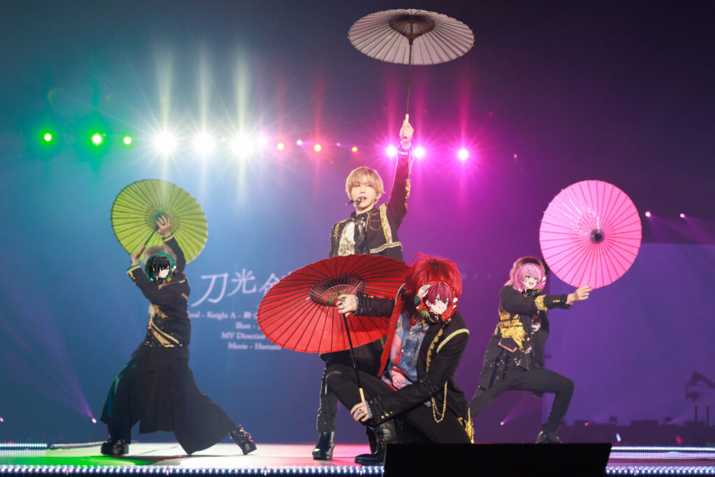 2日目のハイライトとなったのは、YouTuber・タケヤキ翔とKnight A – 騎士A -のコラボ曲のパフォーマンスだ。すとふぇすを意識して制作されたという「BOOGIE DOWN」「刀光剣影」。モダンで和風テイストな楽曲は、倒れても立ち上がるKnight A – 騎士A -の心意気とシンクロした。
