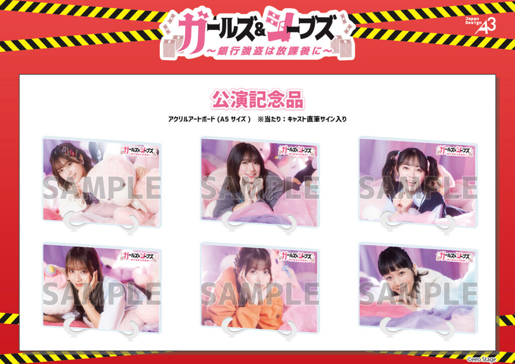 「公演記念品」(公演応援システム)のご購入者には、キャストビジュアルを使用したA5サイズのアクリルボード(台座付)ご用意。