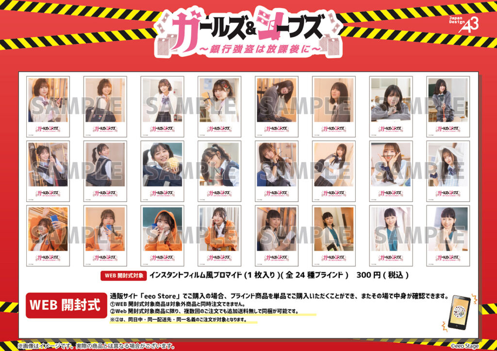 なお、インスタントフィルム風ブロマイドを通販サイト「eeo Store online」でご購入の場合、ブラインド商品を単品でご購入いただくことができるWEB開封式を実施! その場でブラインド商品の中身を確認することができます。
