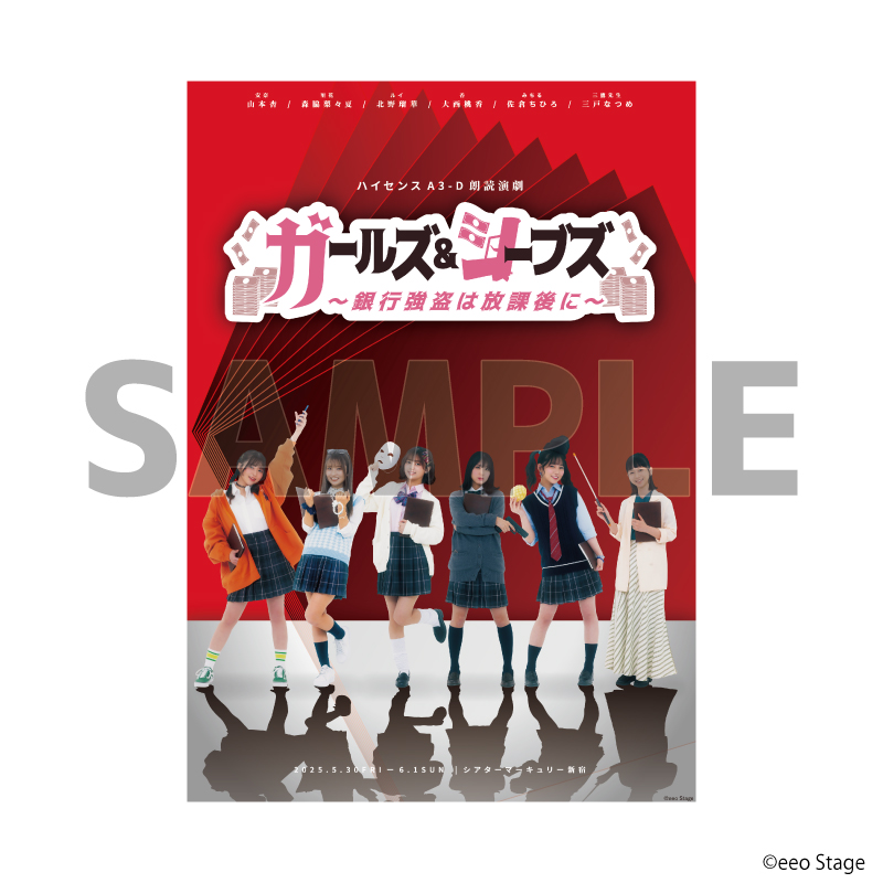 2025年5月~6月にシアターマーキュリー新宿で上演される「ハイセンスA3-D朗読演劇『ガールズ&シーブズ~銀行強盗は放課後に~』」(略称『ガルシブ』)より、グッズ&公演記念品の情報が公開! あわせて、本日4月25日(金)から通販サイト「eeo Store online」で販売が開始されました。