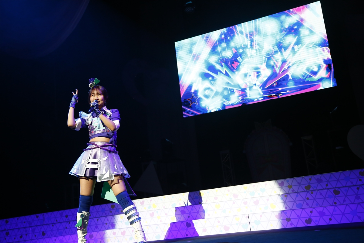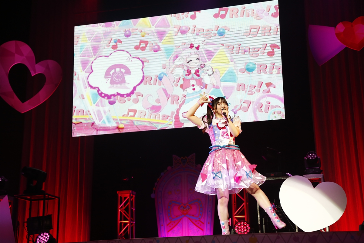 そしてガァルマゲドンの「神曲︕〜Gaarmage Toursim〜」、ノンシュガーの「NonSuger×Age」のほか、真実夜チィ役の大地さんがGIRA GIRA STAR」を、大森さん&朝日奈丸佳さん(華園しゅうか役)が「ゴー︕ゴー︕ゴージャス︕」を、藤寺さんが「パステルステップデイズ」歌唱。さらに、「ヴァーチャデリアイドル♥」を歌い終えた伊藤かな恵さん(赤井めが姉ぇ役)から「今注目のあの曲です」と紹介された和多田さんが「リンリンのひみつマイソング♪」をライブ初披露しました。
