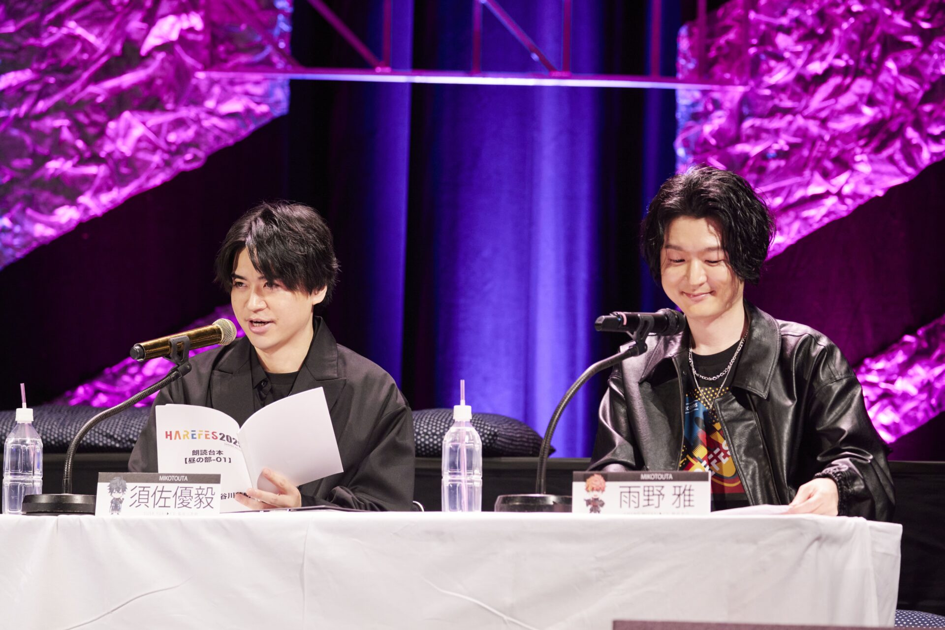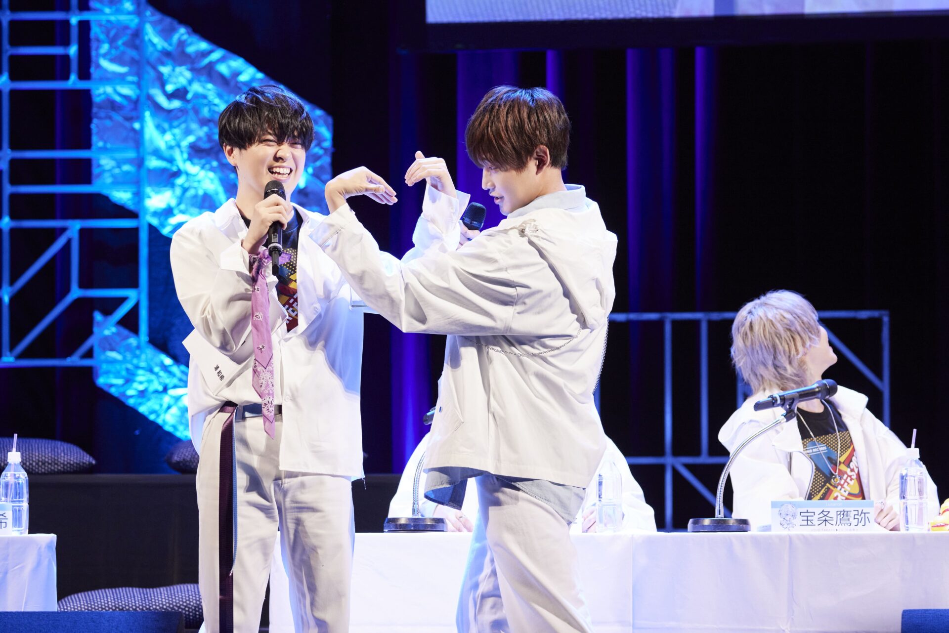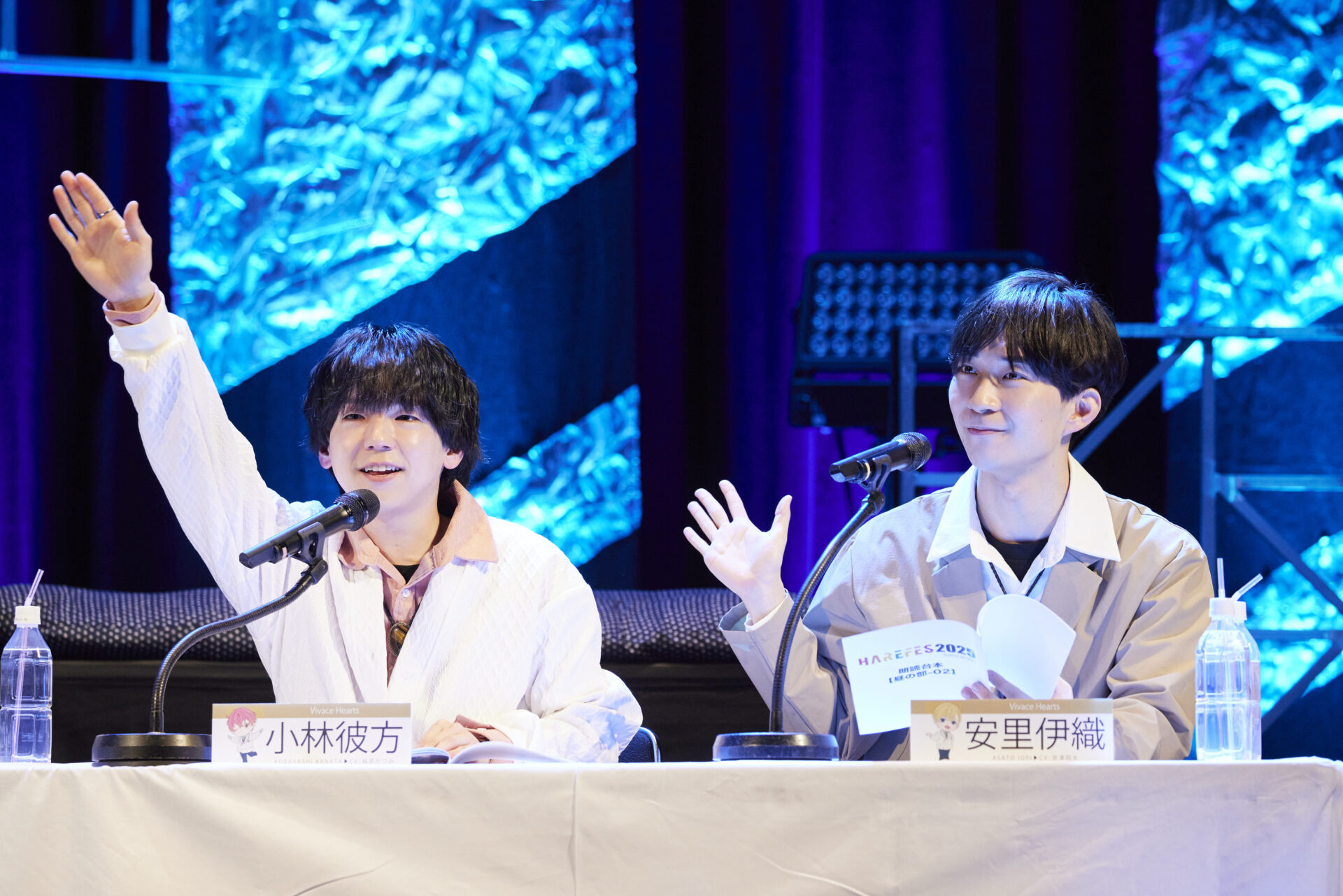 「ハレノステーション」第2回はキャストを入れ替え、Vivace Hearts、LEGAIO、Luxarionと小野寺悠貴演じる岡村繁樹が登壇。MCは佐藤悠雅演じる塚原崚凱と川島零士演じる宝条鷹弥の各ユニットリーダーが務めた。