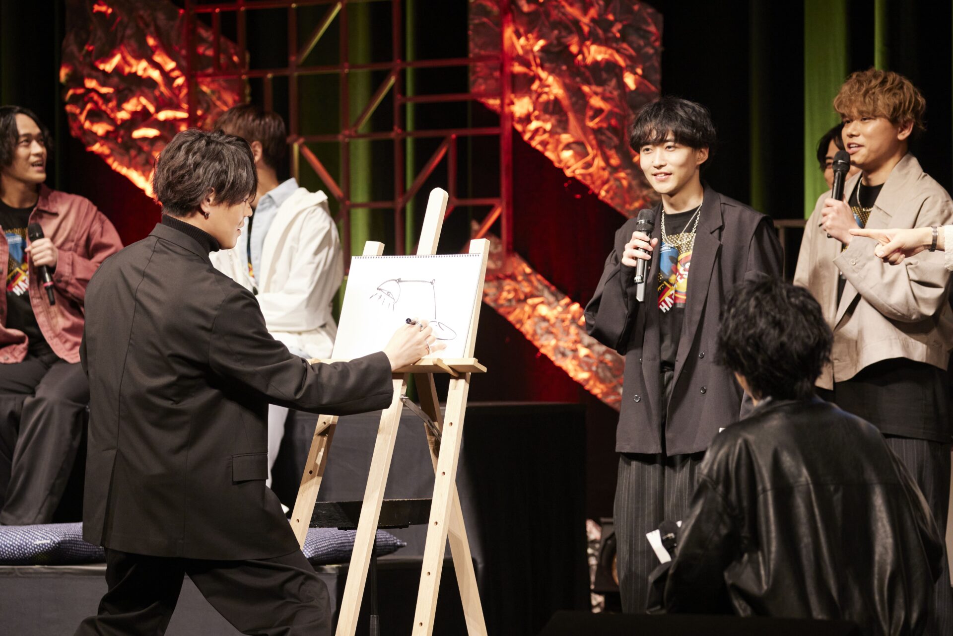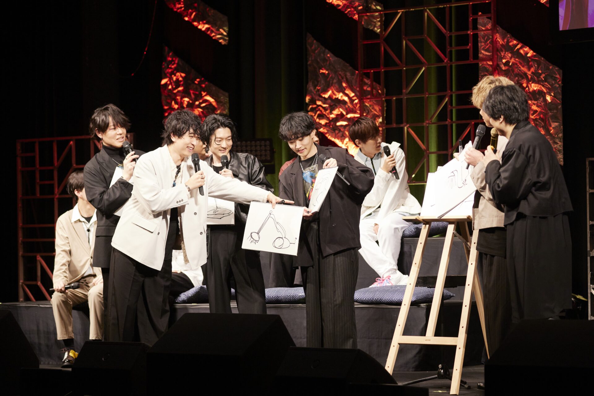 ラストの『LIGARREN』チームのお題は「綱引き」。1番手の川島が見事に描き、客席からは拍手が。続く閻もそのまま綱引きを表現したが、浦が自信満々に個性的なギターを描いたところから一変、そこから佐藤、鶴がなんとか汲み取りトランペットとしてバトンを繋ぐも、梅田が応援団と回答し失敗。答え合わせの際は浦のイラストに客席もキャストもざわつき、それぞれがどのように解釈して絵を描いたかという感想戦でも盛り上がるゲームだった。