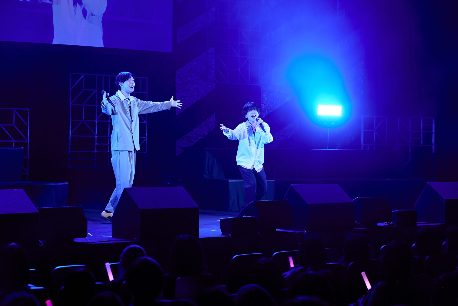次はVivace Hearts の楽曲『Piu Vivace』で、今回は安里伊織(宮澤)と小林彼方(福原)2人でのステージとなった。度々向かい合って歌い、軽やかな声でユニゾンを響かせる。その全身を使ったリズミカルな表現が、曲の暖かさと広がりを会場全体へと届けた。また、この日にいないメンバーのパートも口を動かしてなぞる姿から、彼らの心がひとつであることが伝わってきた。