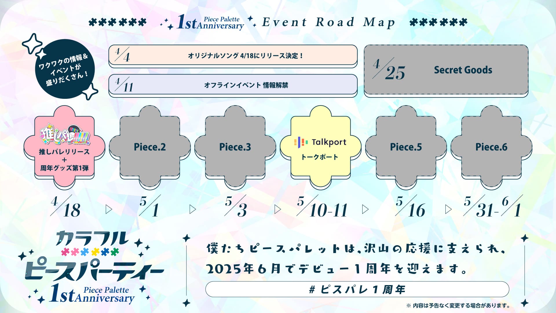「ピスパレ」は2025年6月にデビュー1周年を迎えます。1周年に向けて、4月18日(金)〜6月1日(日)の1ヶ月半にわたり、大型1周年イベント「カラフルピースパーティー」が開催中!