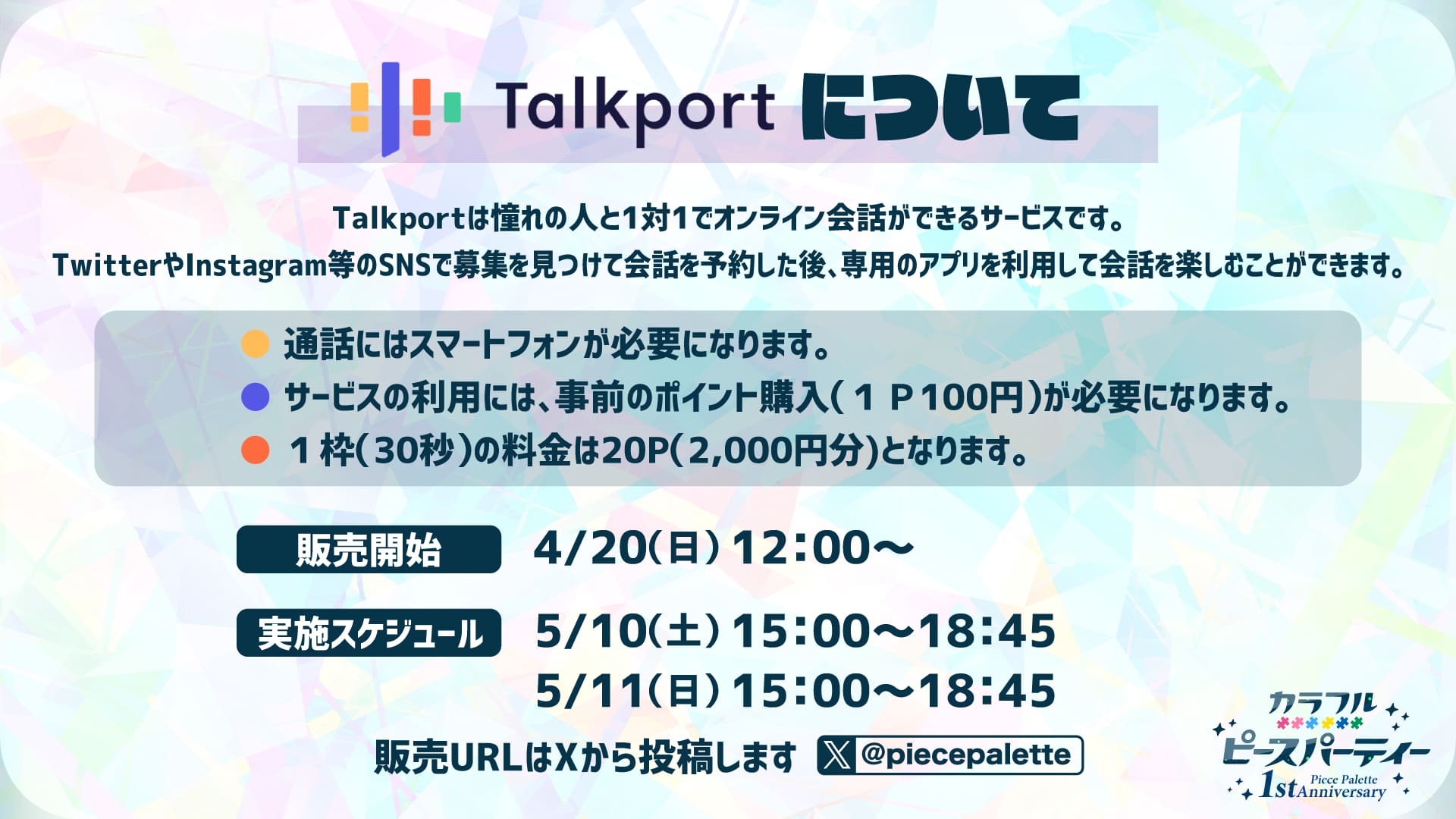 「ぴすぱれ」初の1対1で話せるオンライントークイベントがTalkportにて開催されます。