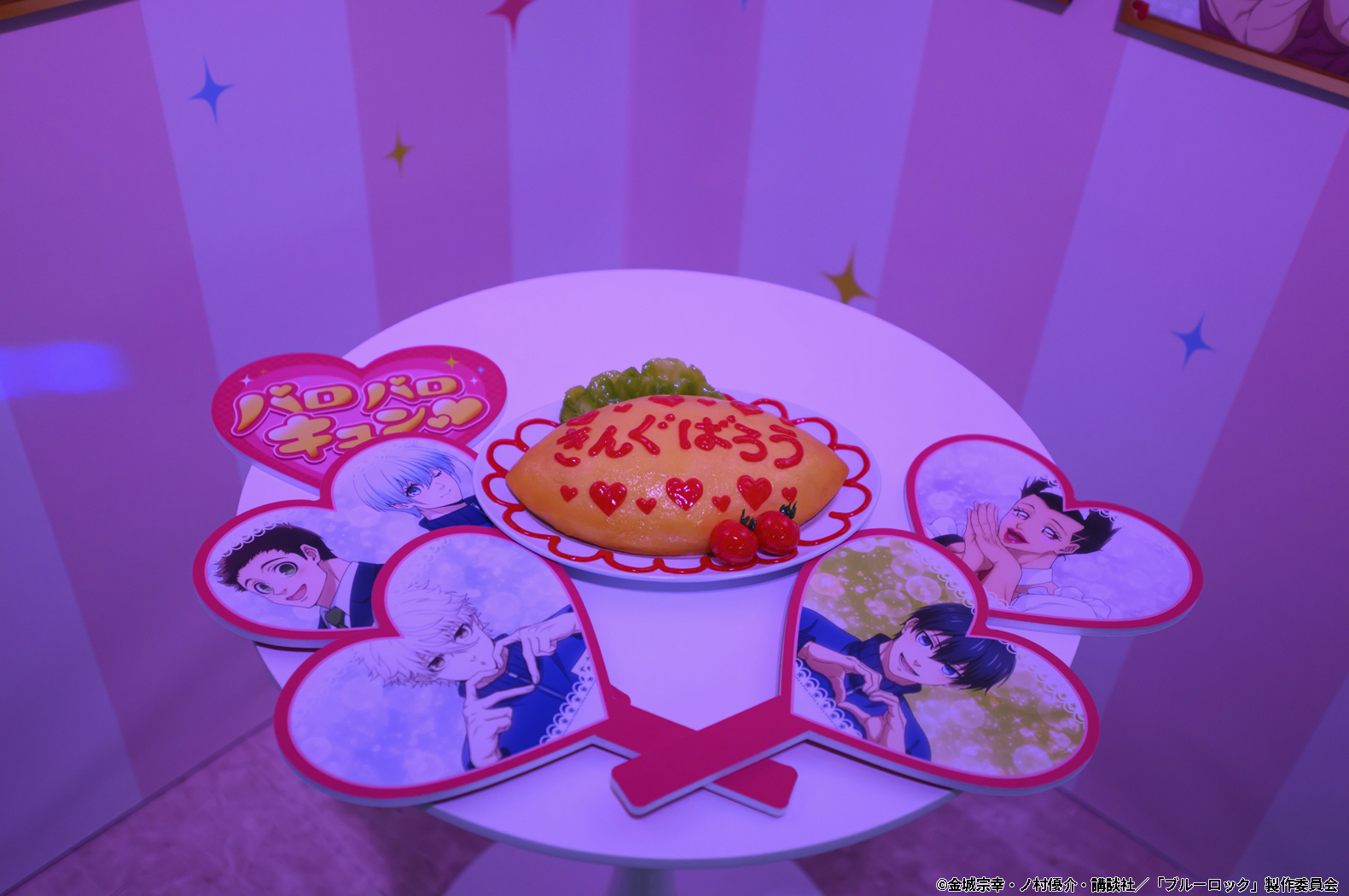 さらにエリア内正面の壁一面には躍動感あふれる潔のカットをメインに「“ブルーロック”イレブン vs. U-20日本代表戦」のクライマックスシーンが展示されている。まるでスタジアムで観戦しているような“熱”を感じてほしい!