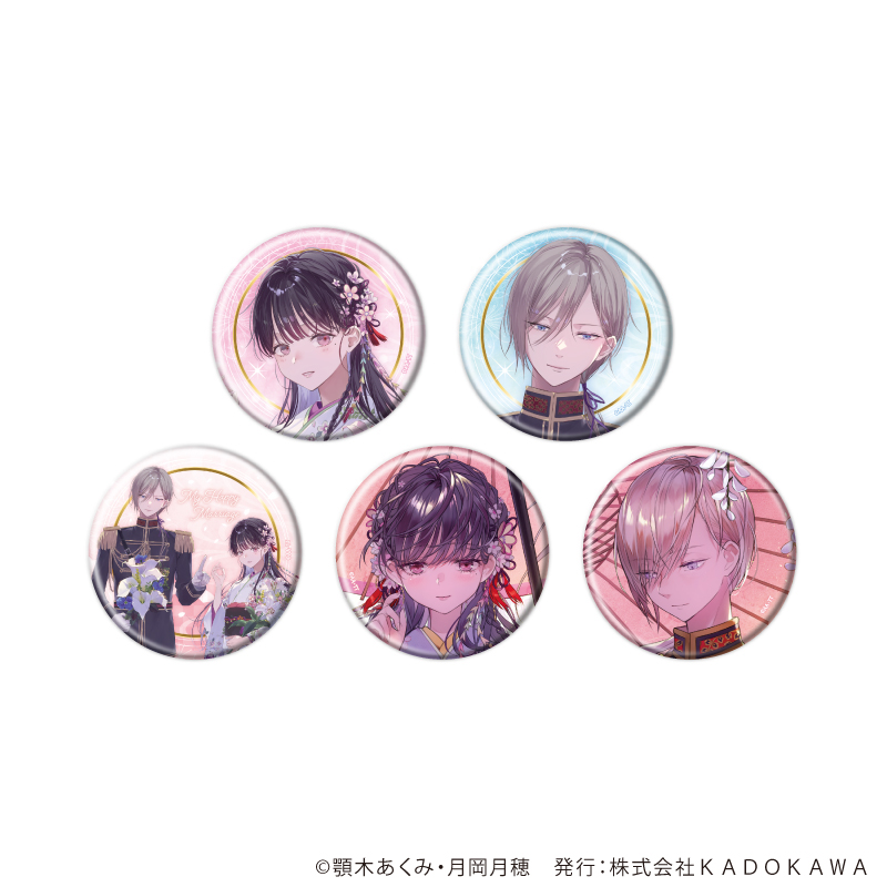 『わたしの幸せな結婚』『かくりよの宿飯』の描き下ろし&公式イラストを使用した缶バッジは、大きさおよそ5.7cm。カバンにつけるほか、コレクションにもぴったりなグッズです!