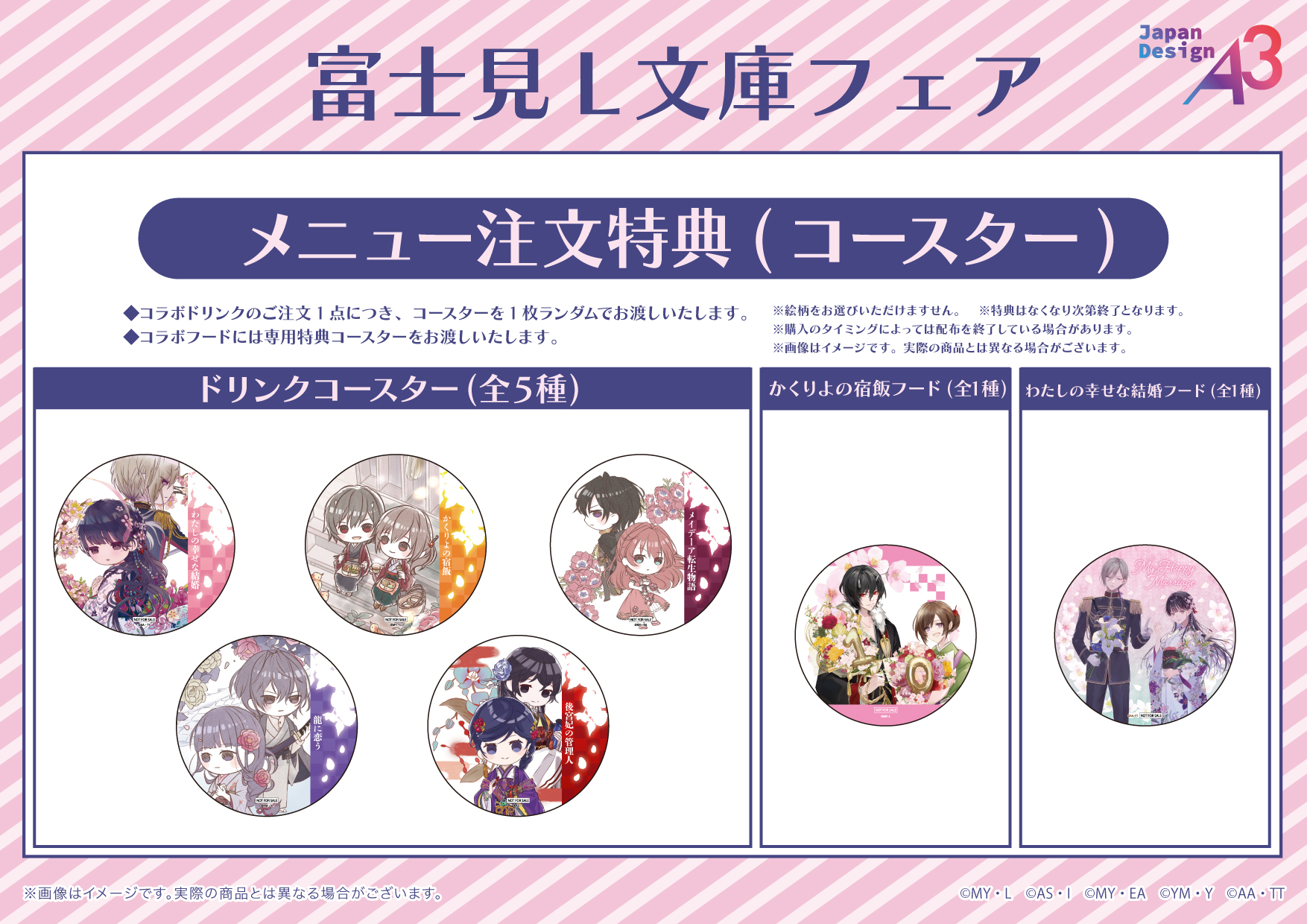 『わたしの幸せな結婚』『かくりよの宿飯』の描き下ろしイラストとGraffArtデザインのコースターを、ぜひゲットしてみてください!!