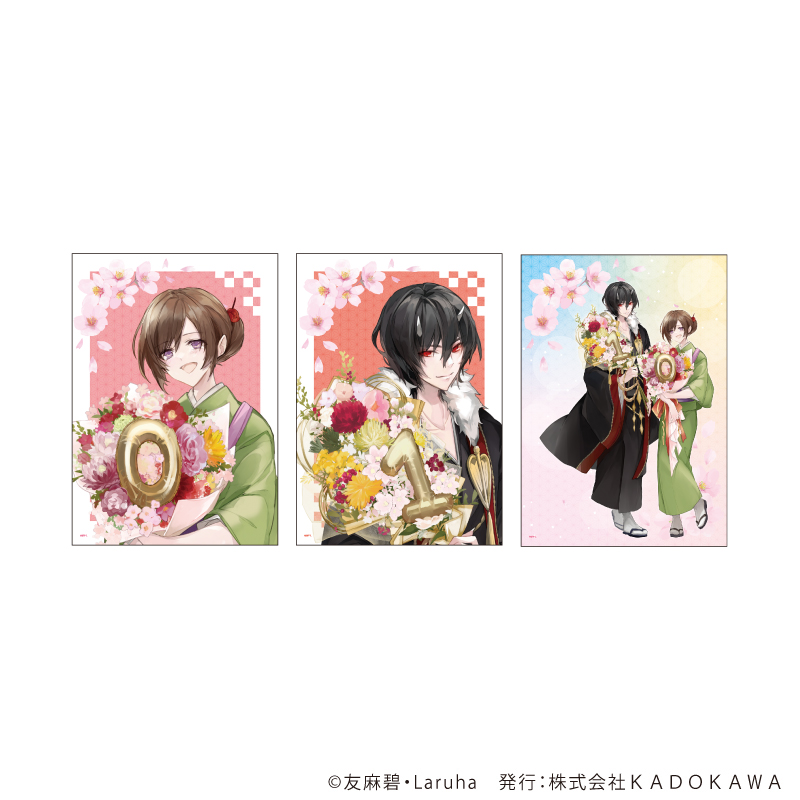 ポストカードの絵柄は、新作グッズにも使用した『わたしの幸せな結婚』『かくりよの宿飯』の描き下ろしイラストとGraffArtです!