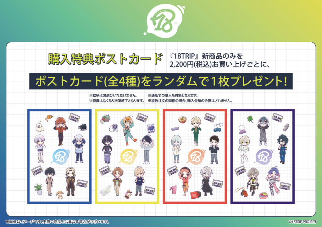 『18TRIP』新商品のみを1会計2,200円(税込)お買い上げごとに、購入特典としてポストカード(全4種)をランダムで1枚プレゼント!