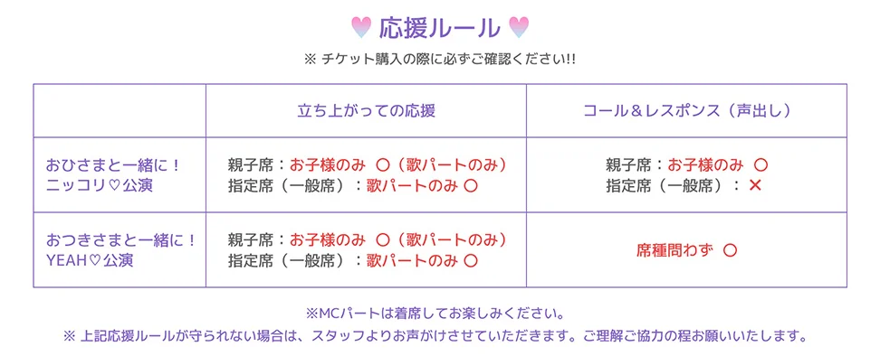 ※おつきさまと一緒に!YEAH♡公演:親子席は2階席エリアになります。