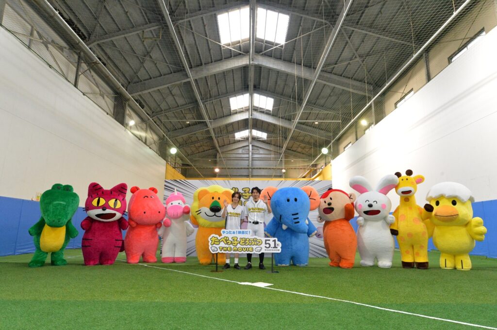 本作の公開直前イベントが4月21日(月)に行われ、主人公・らいおんくん役の松田元太さんとぞうくん役の水上恒司さんがたべっ子どうぶつたち10人とともに、ベースボールスタイルダイヤを模した屋内スポーツ施設・フットサルスタジオライズ豊洲に登場。