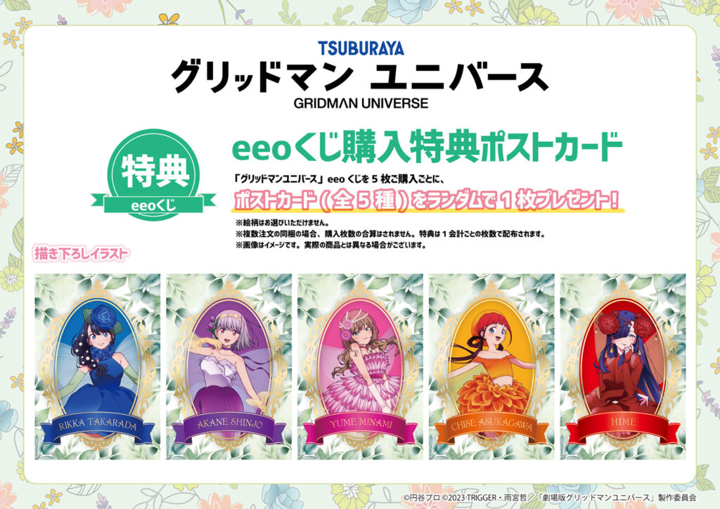 今回発売した『グリッドマンユニバース』の「eeoくじ」を1会計で5枚お買い上げごとに、ポストカード(全5種)をランダムで1枚プレゼントします。
