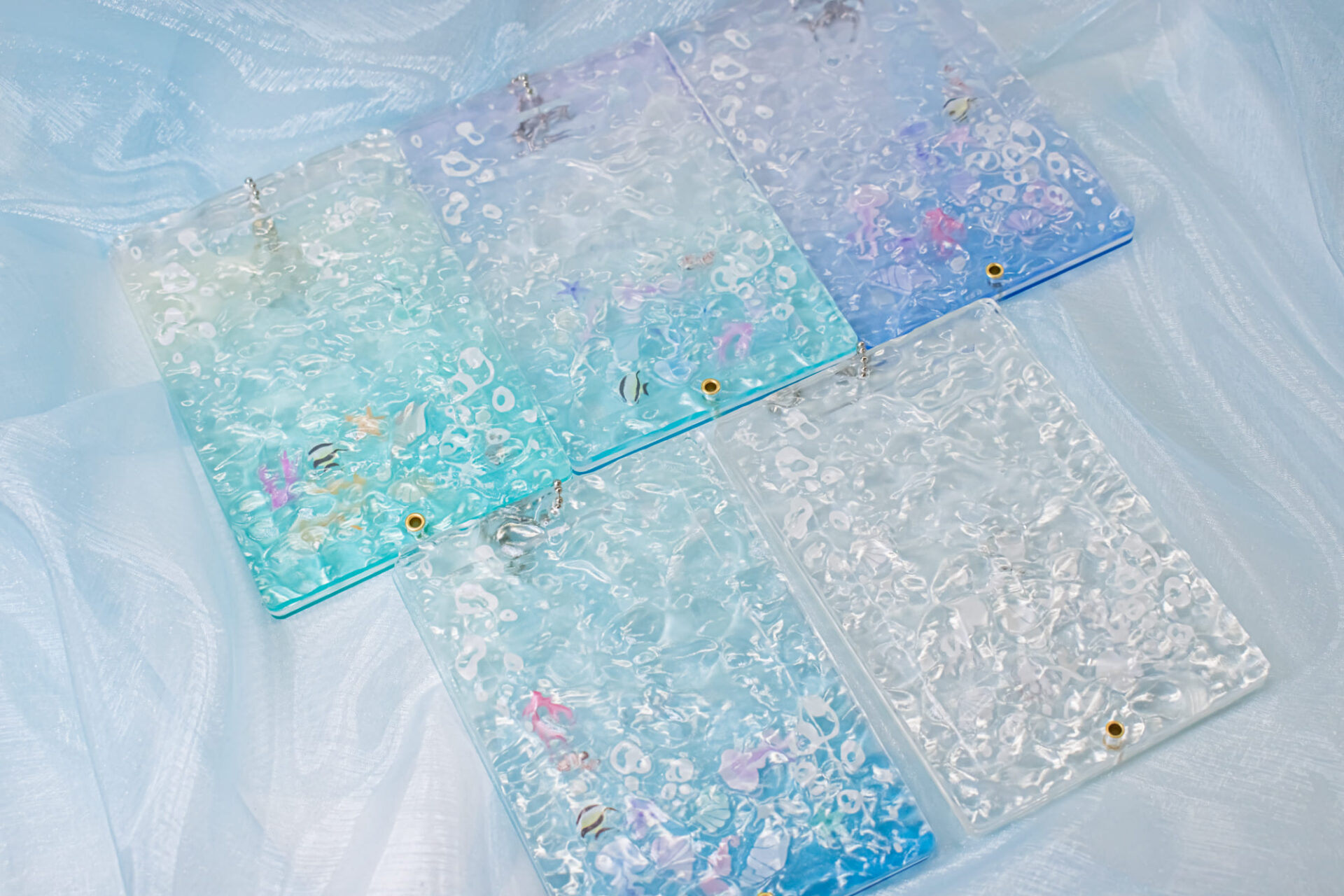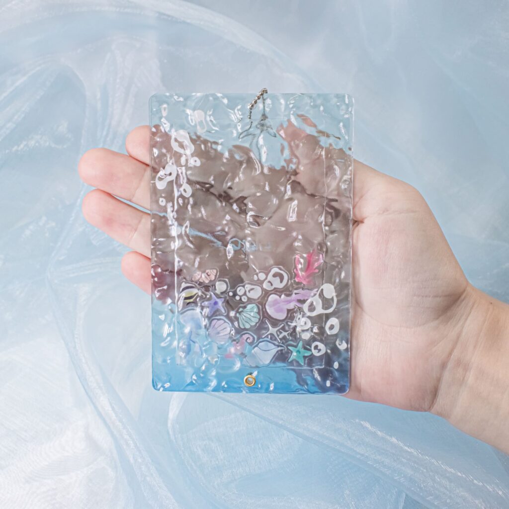 「ぷく波アクリルフレーム」は、波をイメージした凹凸のあるアクリル板を使ったアクリルフレームです。このアクリルフレームの中にアクスタやブロマイドを入れれば、まるで推しが海の中にいるかのような幻想的な雰囲気に!