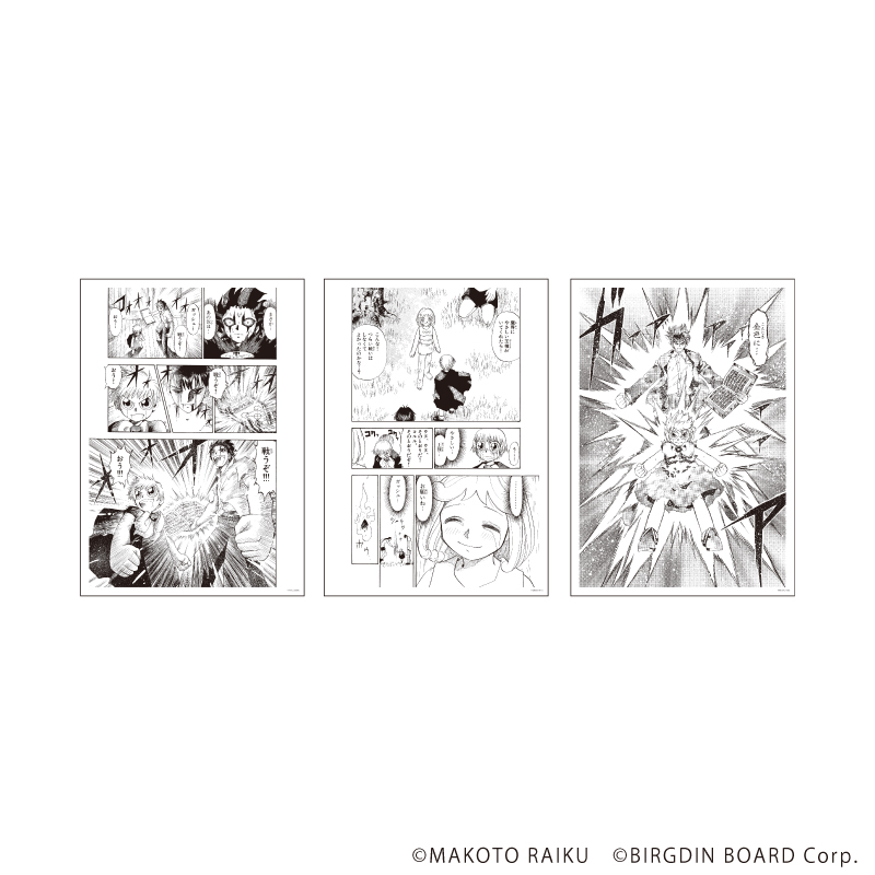 REPLICA GENGAは、複製原画3枚がセットになったグッズ。B4サイズ(25.7cm×36.4cm)と大きめなので、漫画を読んだ時の感動が蘇る場面をデザインしました。