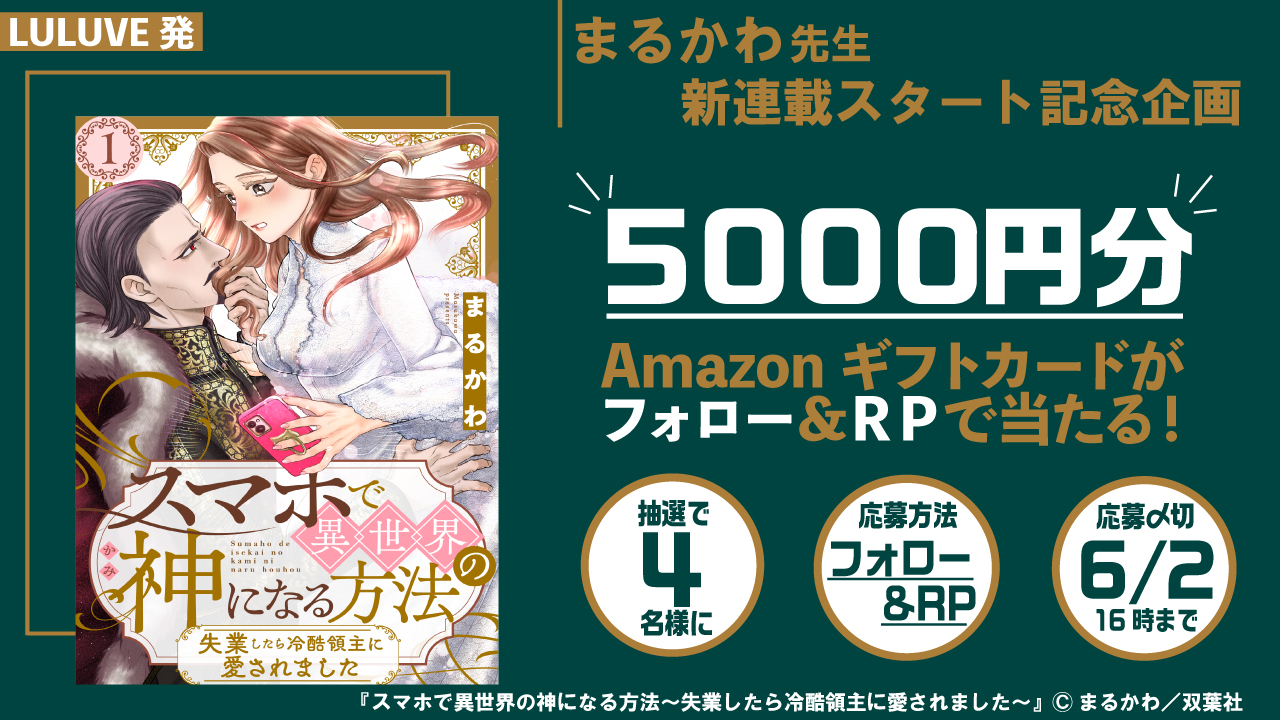また、『スマホで異世界の神になる方法~失業したら冷酷領主に愛されました~』は、SNSを中心に掌編を発表し注目を集めている新鋭・まるかわ先生の異世界ラブコメ作品。