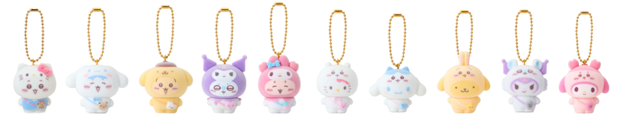 6月13日(金)より発売開始となる「ちいかわ」と「サンリオキャラクターズ」のコラボアイテム。お互いの“ふわっふわもこもこ”のスーツを身にまとったコラボならではのオリジナルデザインで、「ちいかわ&ハローキティ」「ハチワレ&シナモロール」「うさぎ&ポムポムプリン」「モモンガ&クロミ」「古本屋&マイメロディ」のペア同士がそれぞれのキャラクターになりきった愛らしい姿で登場します!