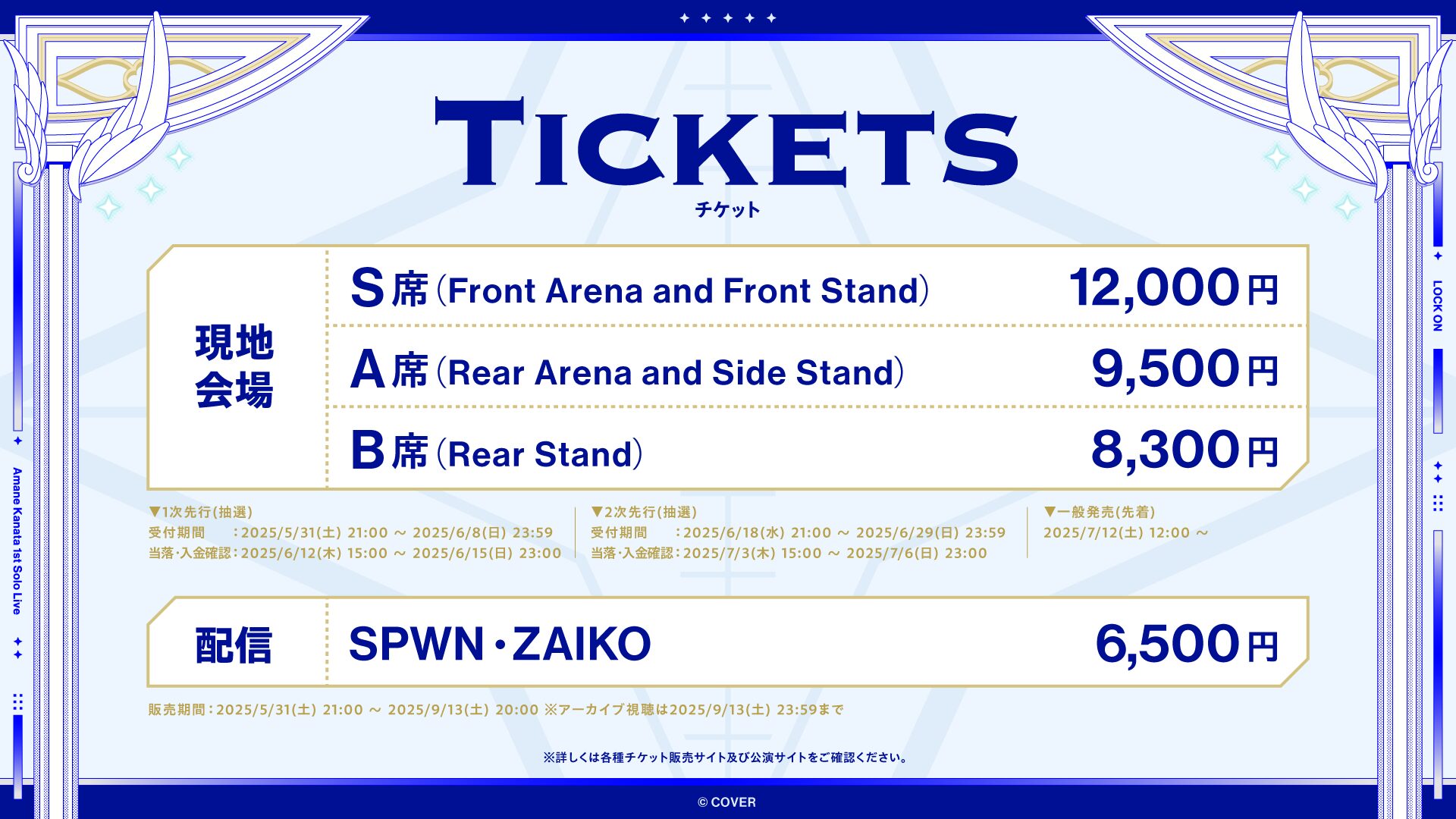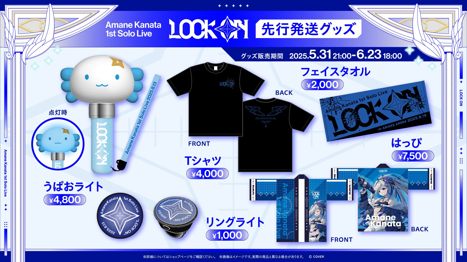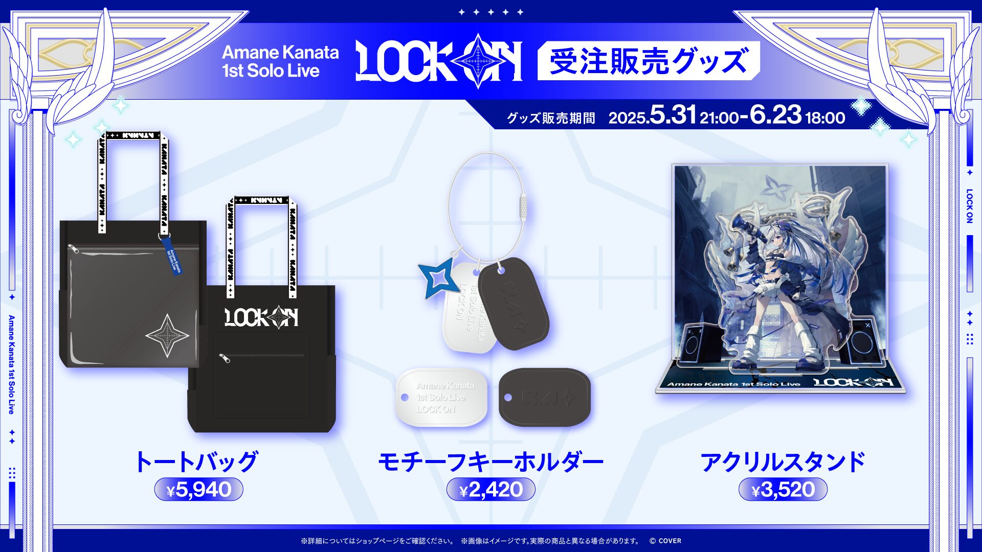 チケットスケジュールのほか、「Amane Kanata 1st Solo Live “LOCK ON”」のグッズ情報も公開に。