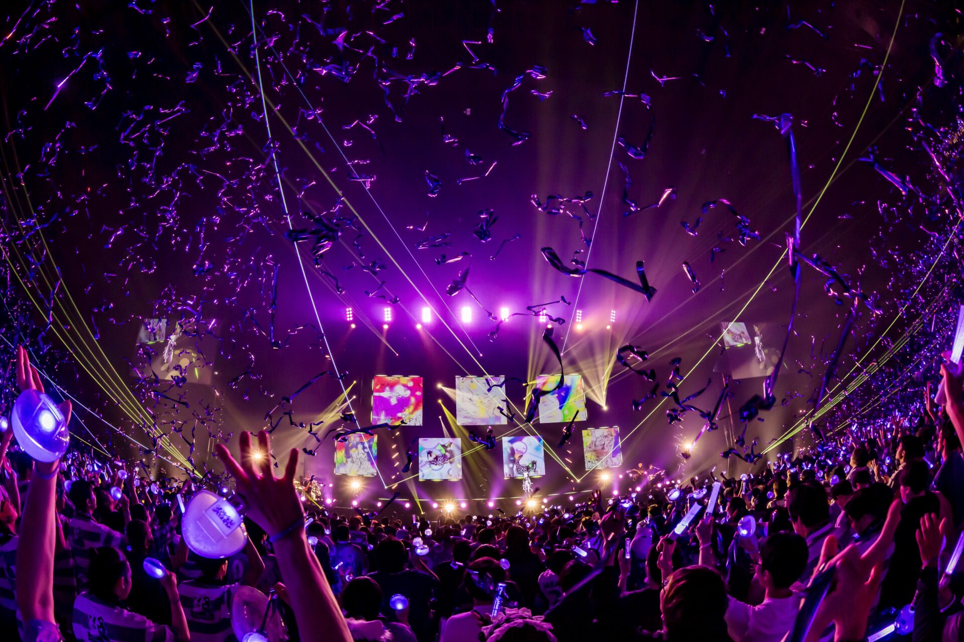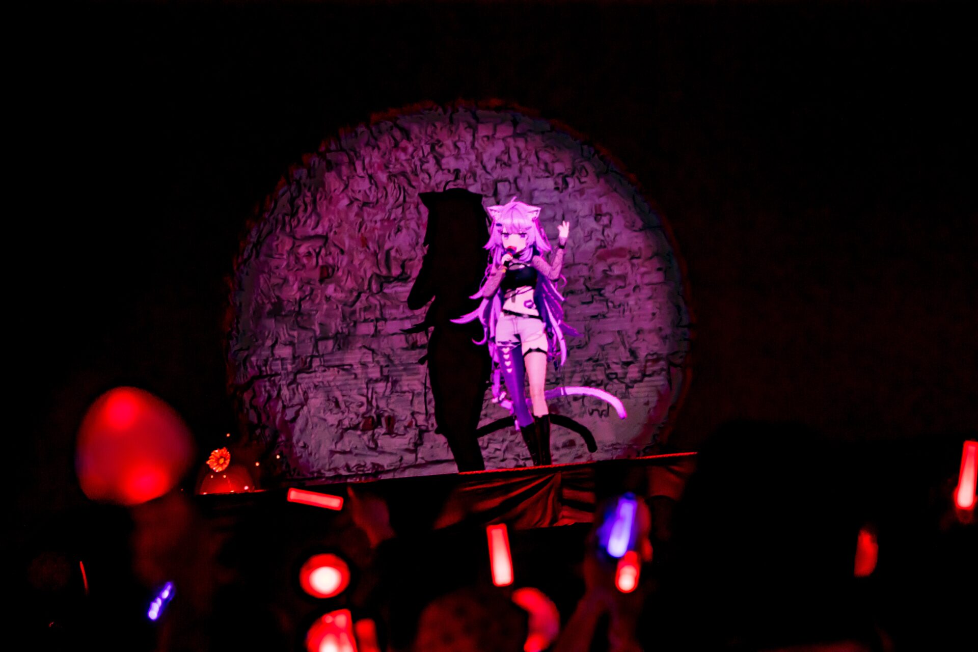 終盤には、おにぎりゃーに向けて事前に書いてきた手紙も披露。「こんな最高な景色を、僕に見せてくれて本当にありがとう!」「これから、もっともっと、もーっとみんなに笑顔を届けたい! 月並みな言葉だけど、約束したいです」と真っすぐな感謝を伝えつつ、最後に「現場の猫又さんにお返しします。現地が万が一変な空気でも、当方、一切責任を負いかねます」と急に過去の自分がメタ的に主張してくるという、一筋縄ではいかないユーモアがいかにも彼女らしい。本編最後は「カミサマ・ネコサマ」で会場全体をレーザーが覆いつくし、大合唱でコールを送る観客席にキャノン砲で銀テープが舞って本編を終えた。