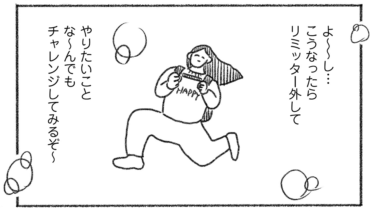 よもぎ蒸し、歯科治療などの自分の身体を整える行いに加えて、「はじめてピンクの服を買ってみる」など、自分が“できない”と思っていたことにも立ち返り、解きほぐし、挑戦。