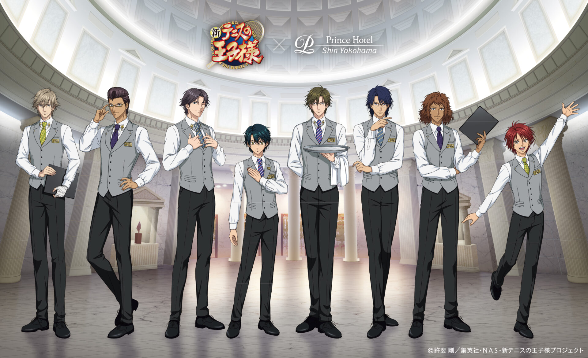 その第2弾となる今回のコラボレーションでは、越前リョーマたちその他のテニス強豪校の部員たちによる“ホテルの職業体験”をテーマにした、コラボレーション商品が登場します。