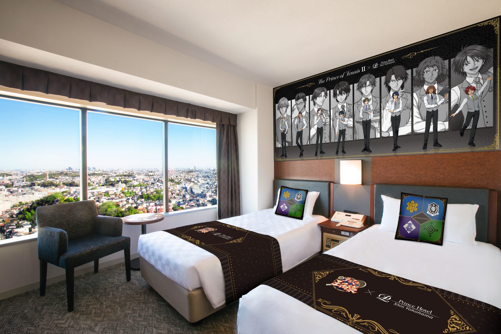 テニス強豪校の部員たちによるホテルでの職業体験をテーマにした、描き下ろしイラストに囲まれるお部屋をご用意。