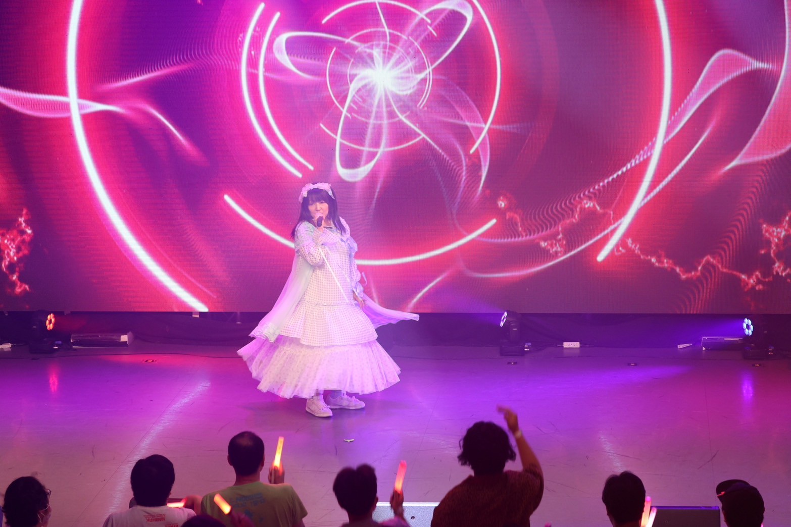 後半のライブコーナーでは、「2001年のゲーム・キッス」など、普段アニソンイベント等ではなかなか聴ける機会がレアな珠玉の楽曲も披露。ラストはやはり鉄板の「LOVE.EXE」。熱気も最高潮にフロアがオレンジのサイリウム一色に染まった。