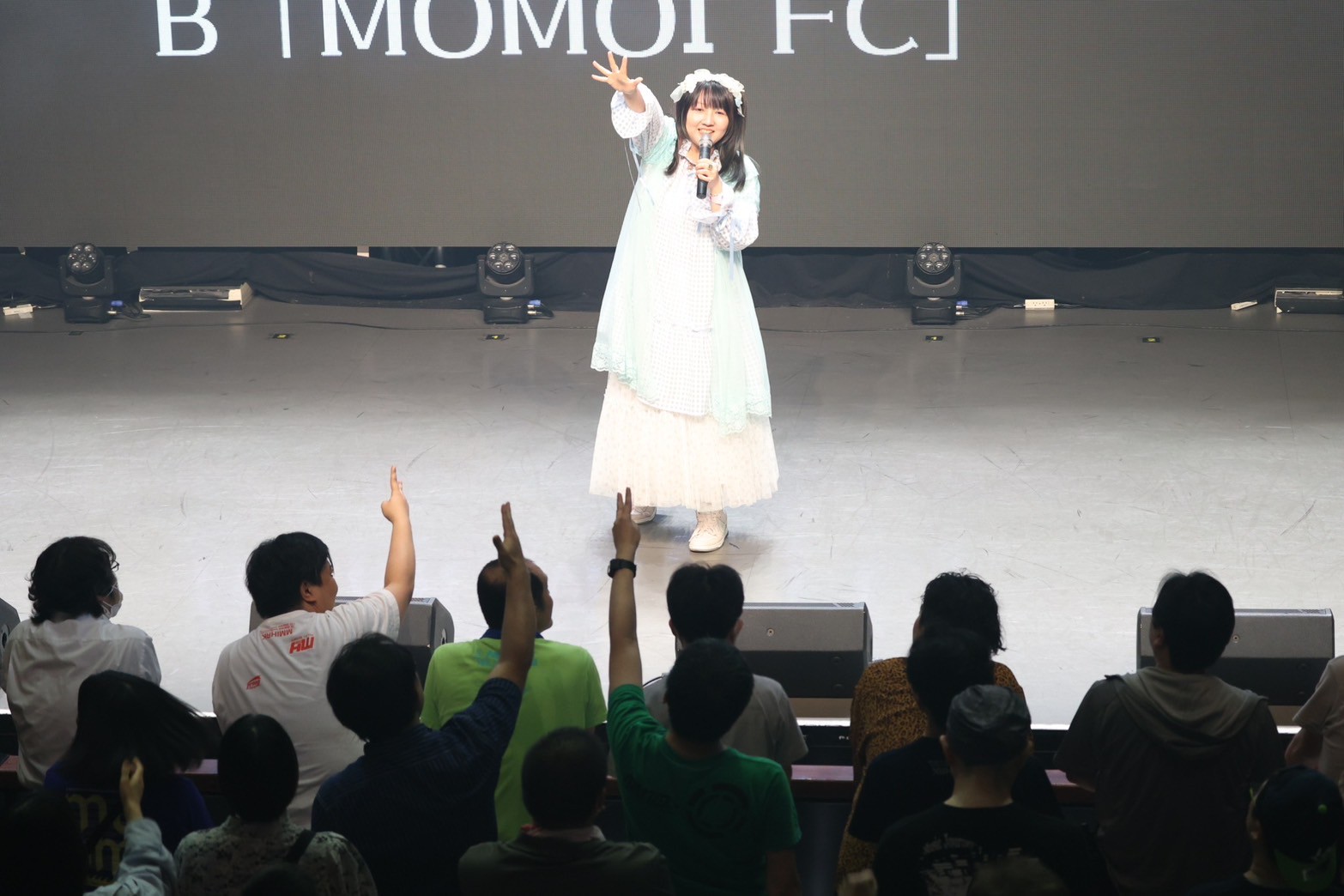 期待に胸高まる中、イベントコーナーへ。「新ファンクラブの名前を決めよう!」「次回FCイベントはゲストを呼ぶ? 呼ばない?」「ジャケ写はスカートorパンツ?」などの設問を、ファンの声量dBを測定し決めていくというモモーイとモモイストらしさ全開のコーナー。最後は「モモーイの登場SEを録ろう!」とファンがSEの録音に参加し、割れんばかりのコールが会場に響き渡った。