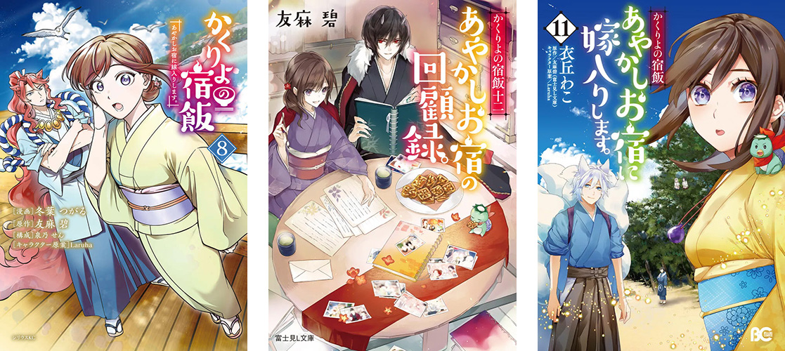 2015年4⽉に第1巻『かくりよの宿飯 あやかしお宿に嫁⼊りします。』を刊⾏し、現在原作⼩説が12巻まで、コミカライズはB’s-LOG COMICS版が11巻、シリウスKC版が8巻まで発売。シリーズ累計260万部突破の⼈気シリーズです。