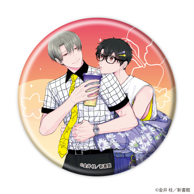 2人のリラックスした表情を間近で楽しめる、見ごたえたっぷりの大きめ缶バッジです。多幸感溢れる描き下ろしイラストは、眺めているだけで心が満たされます♪