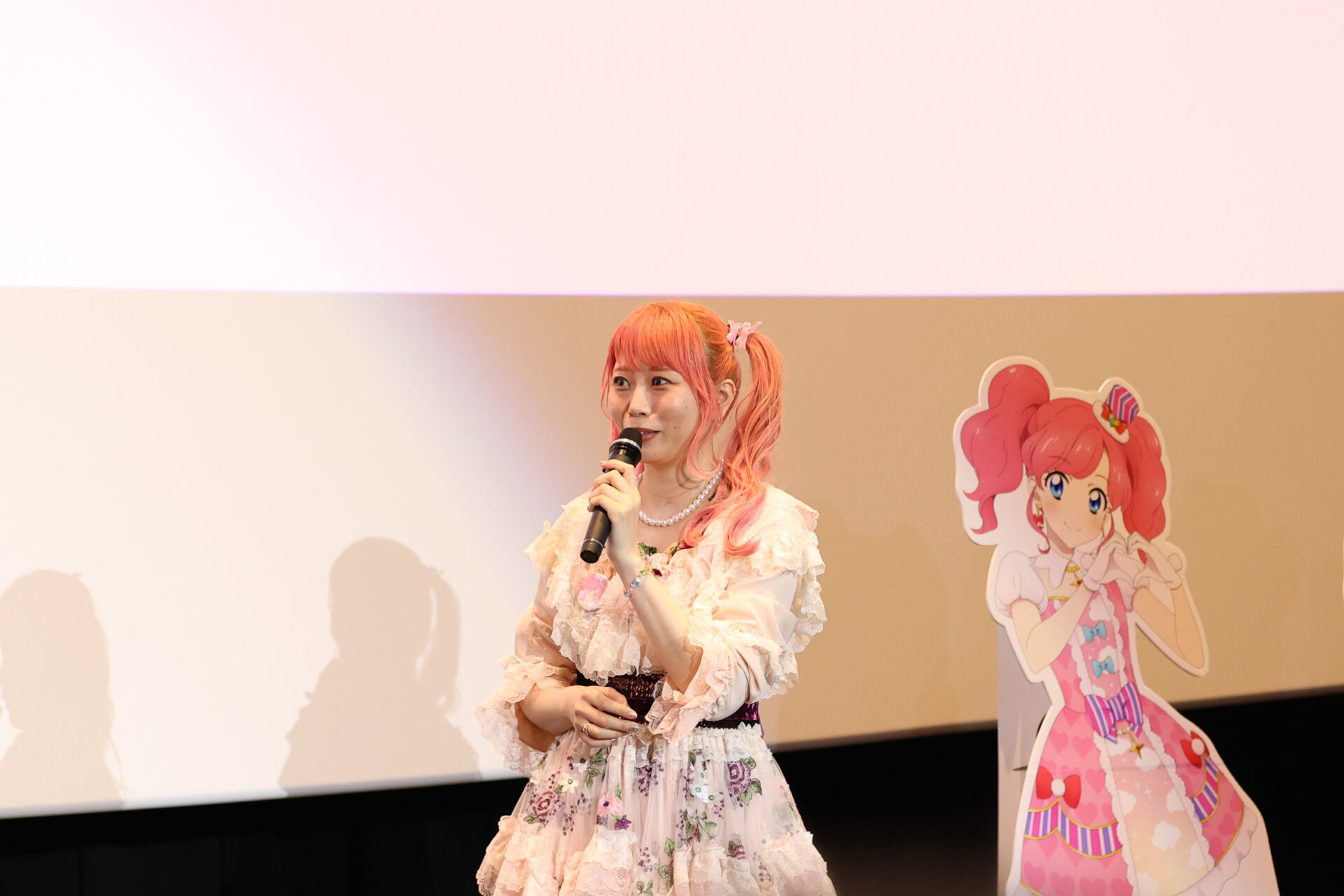 ご来場のお客様の中には既に2回以上観られたという方も、今回が初めてという方もいらっしゃる中で、今回の公開を受けての気持ちについて下地さんは「『あかジェネ10周年』の中で、今回の上映のような形で作品に関われるとは思っていなかったのでとても嬉しいです!」、川上さんは「新録パートでまどかをまた新たに演じることができると思っていなかったので、驚きもありつつ、スキップスとして舞台挨拶に立てるのが本当に嬉しいです!」、木村監督は「昨年の『劇場版アイカツ!』の10周年リバイバル上映を終えて、しばらく皆さんとお会いできる機会もないと思っていましたが、すぐに今回のような上映ができて、すごく嬉しいです。」とコメント。