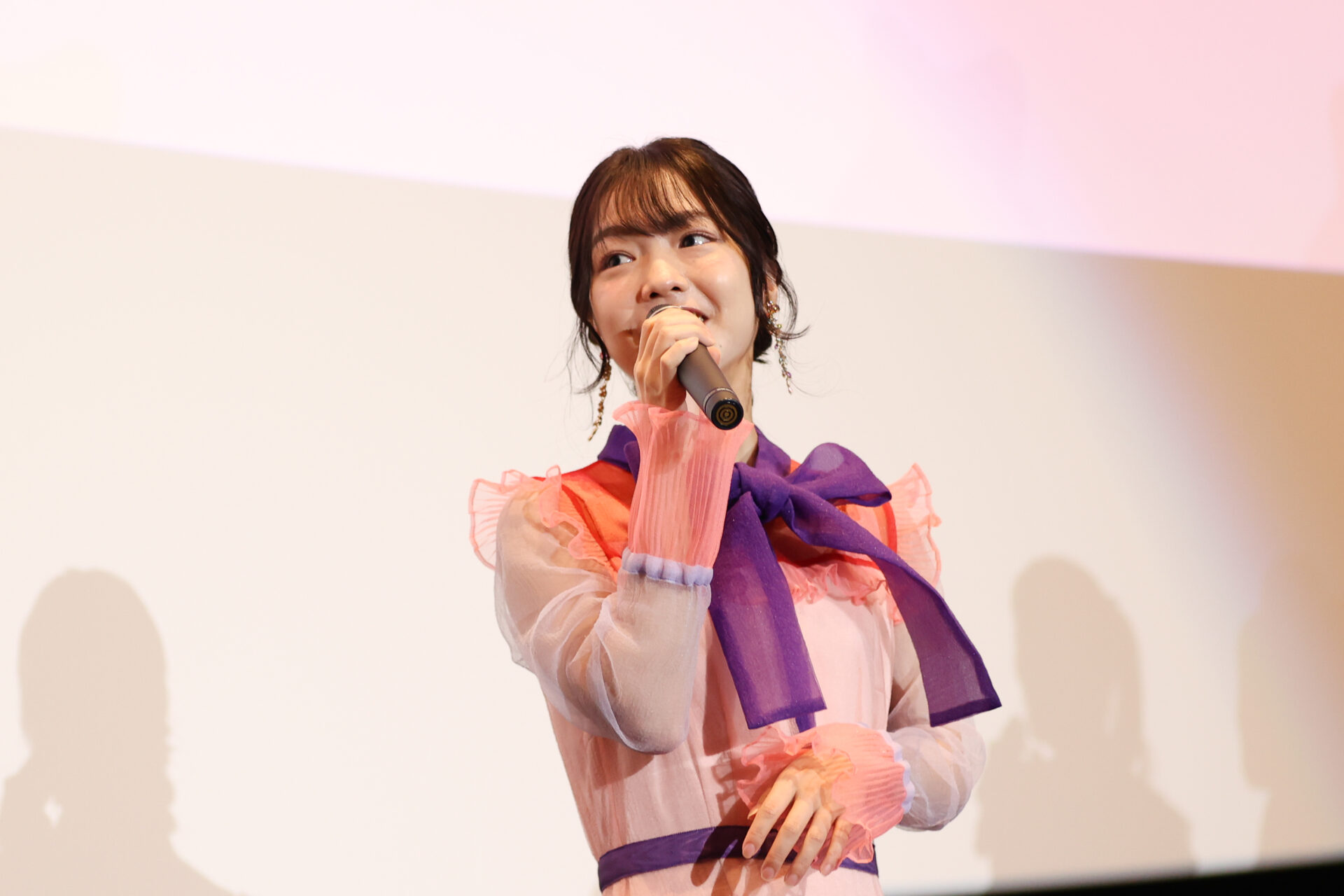今回はたくさんのユニットが活躍する、「ユニットカップ編」を上映。ユニットを組むうえで、大事なことを問われると、川上さんは「劇中でまどかも言っている通り、2人がどちらも“輝ける”ということが大事なのではないかと思います!」、下地さんは「思いやりや、お互いを尊重する気持ちが大事だと劇中のあまふわなでしこの2人を観ていても思いましたね。」とそれぞれが大切にしていること答えました。