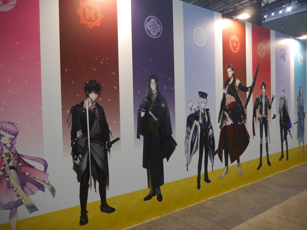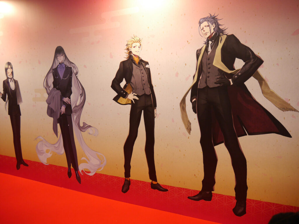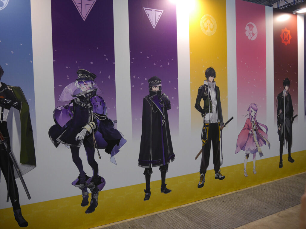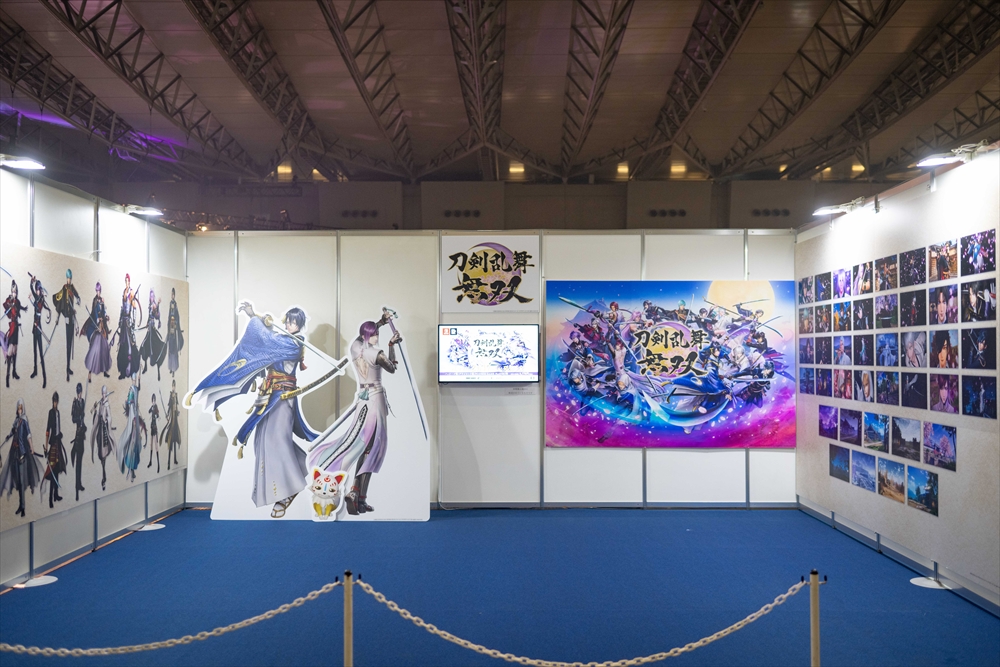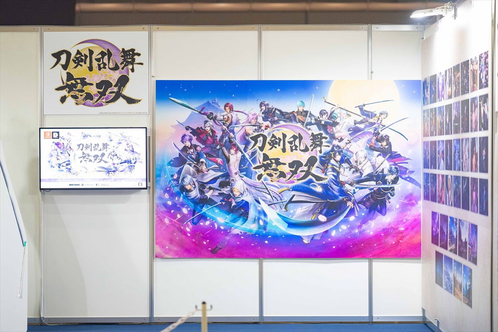 『刀剣乱舞ONLINE』とコーエーテクモゲームスが誇る人気作「無双シリーズ」のコラボによる3Dアクションゲーム『刀剣乱舞無双』。本作のキービジュアルやキャラクターたちのパネル、場面カットが展示されていました。